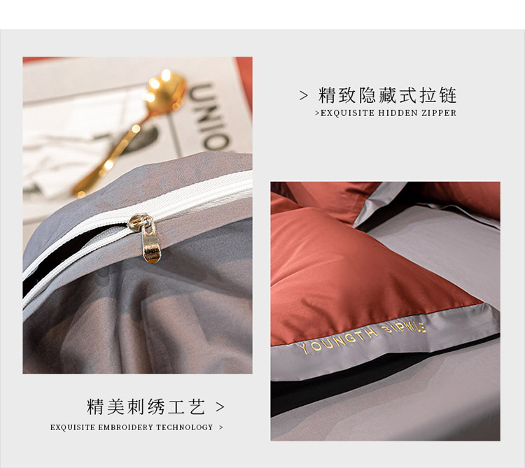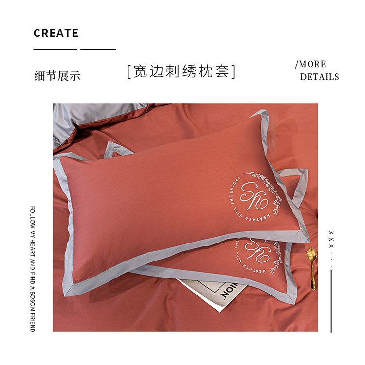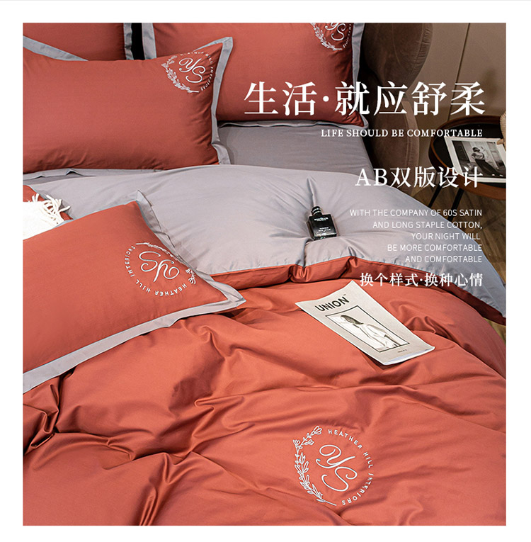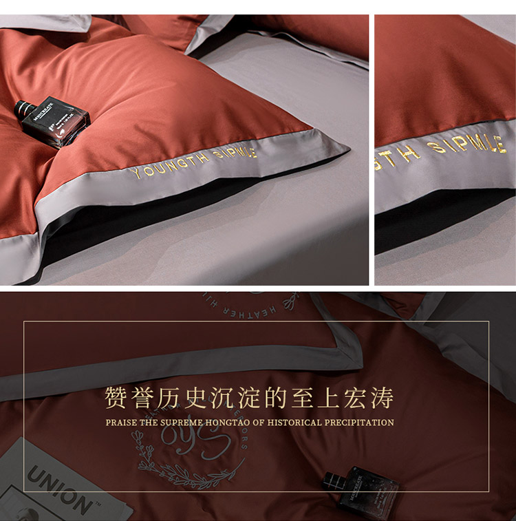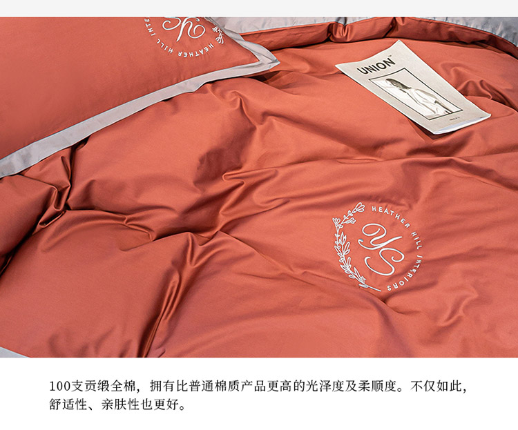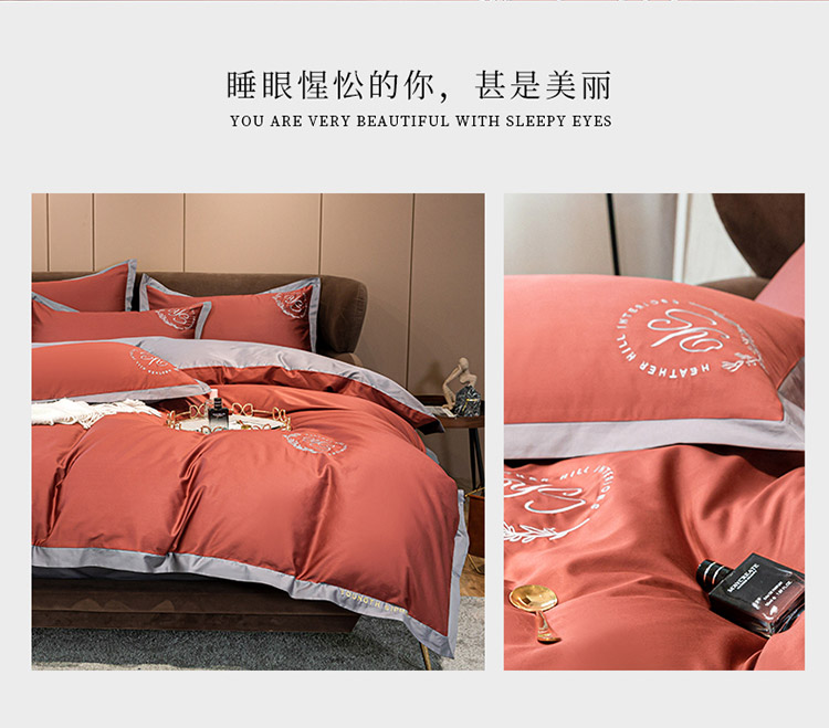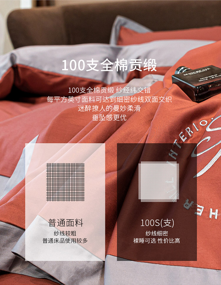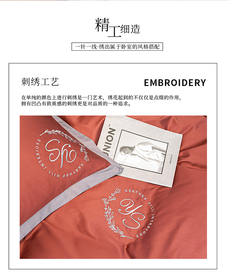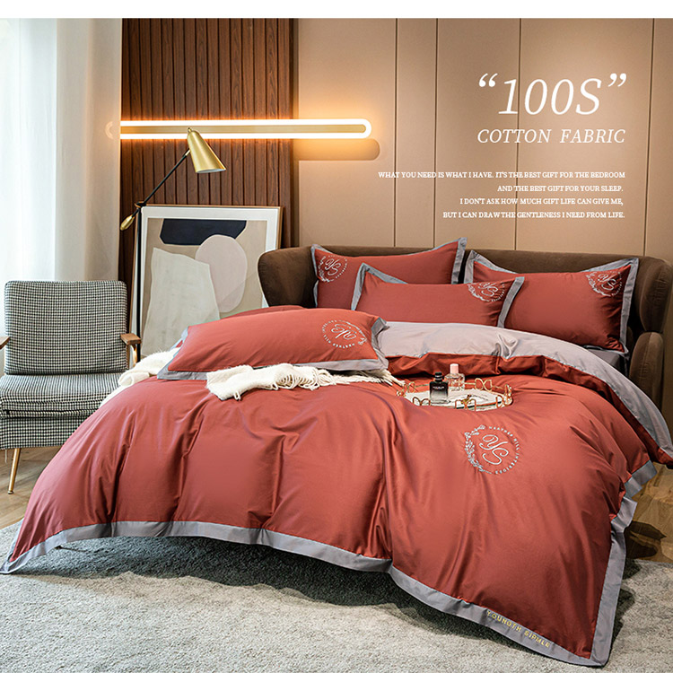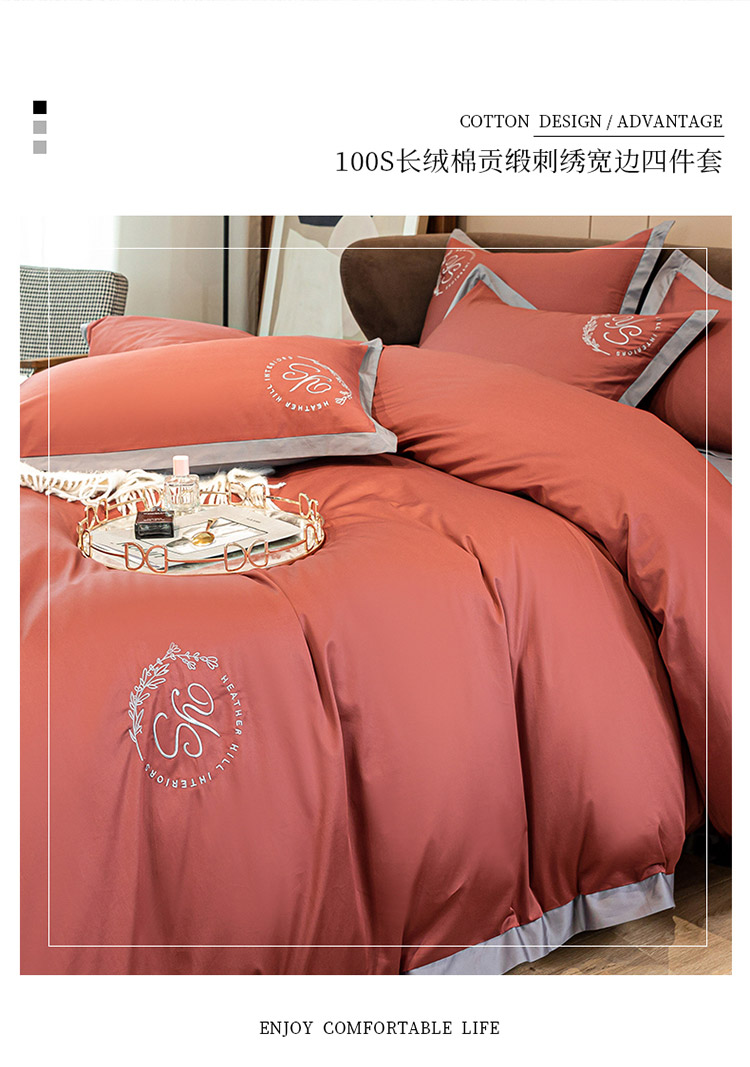 商品名称:爱缦2020新款100S长绒棉澳棉刺绣简系列四件套 印度红-银灰