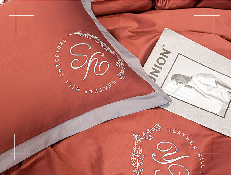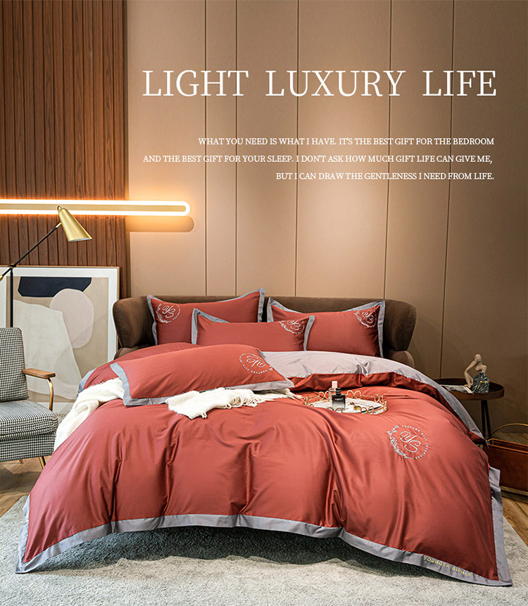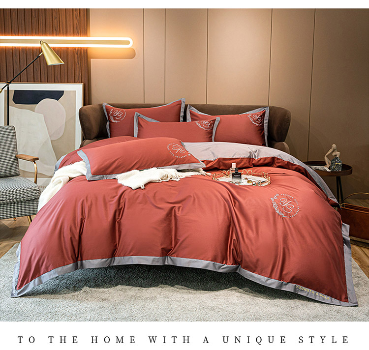 爱缦2020新款100S长绒棉澳棉刺绣简系列四件套 印度红-银灰