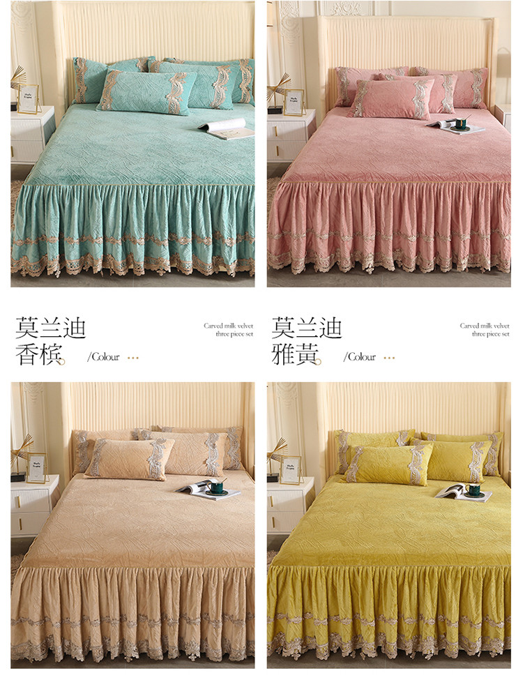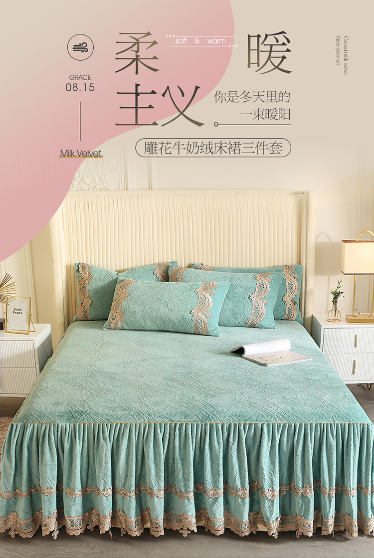 • 91家纺网 家纺一手货源 找家纺 网红馆 2025新款牛奶绒雕花单品床裙被套枕套 莫兰迪-青樱