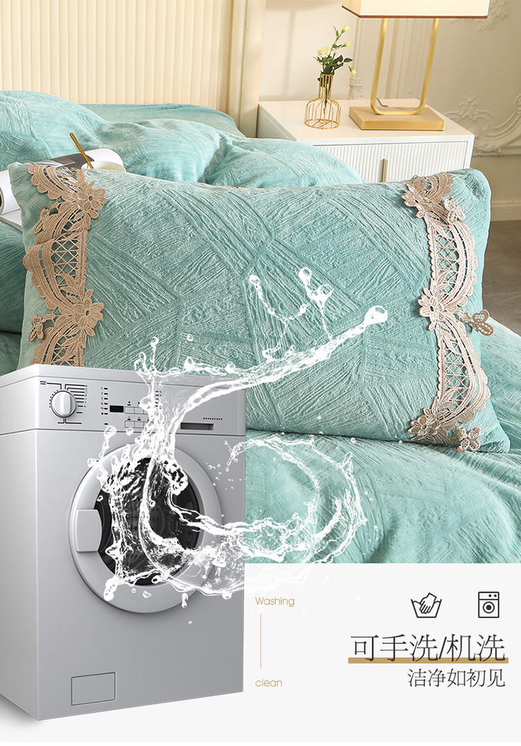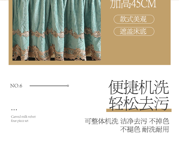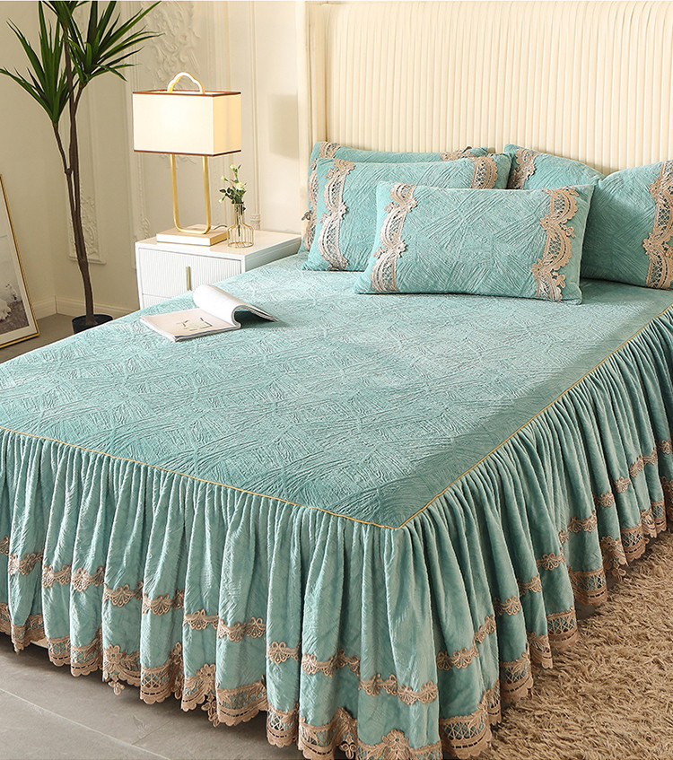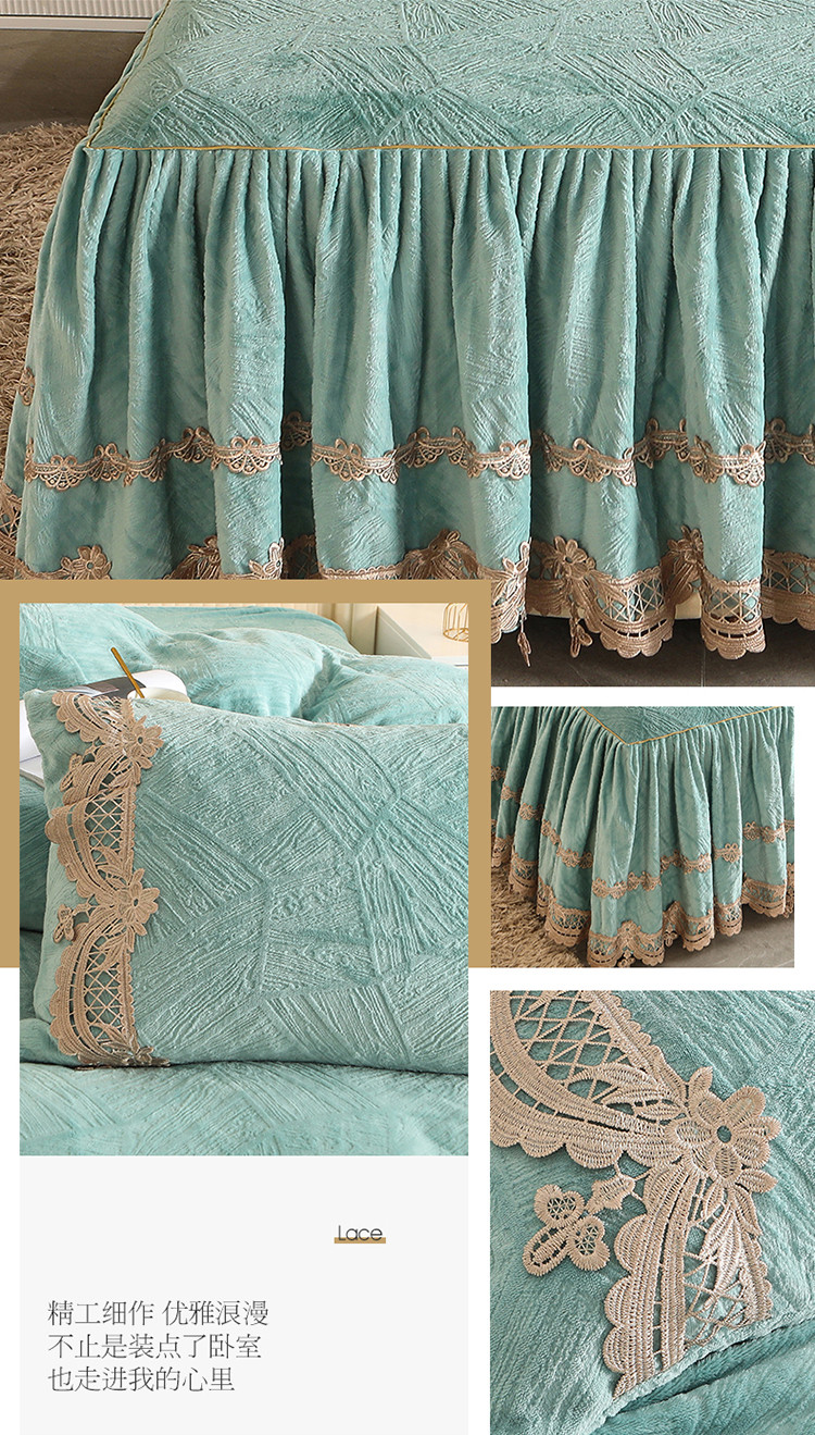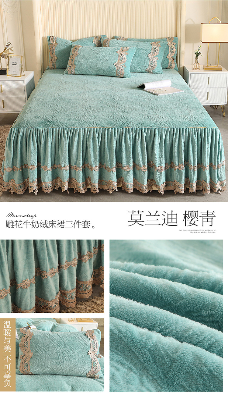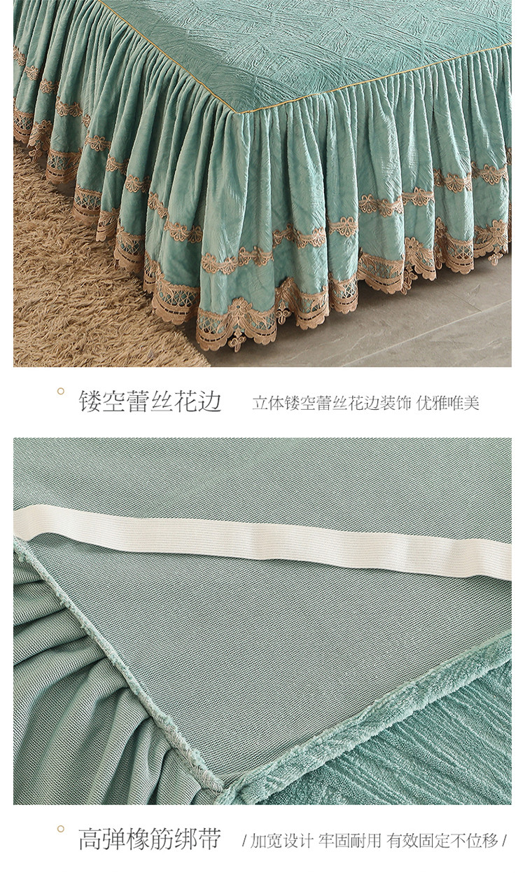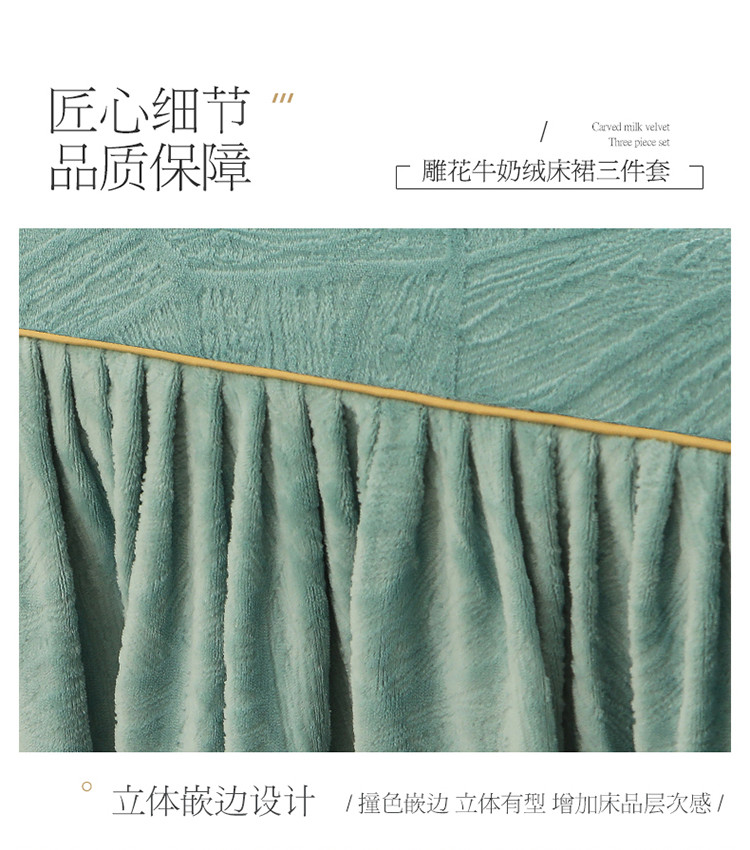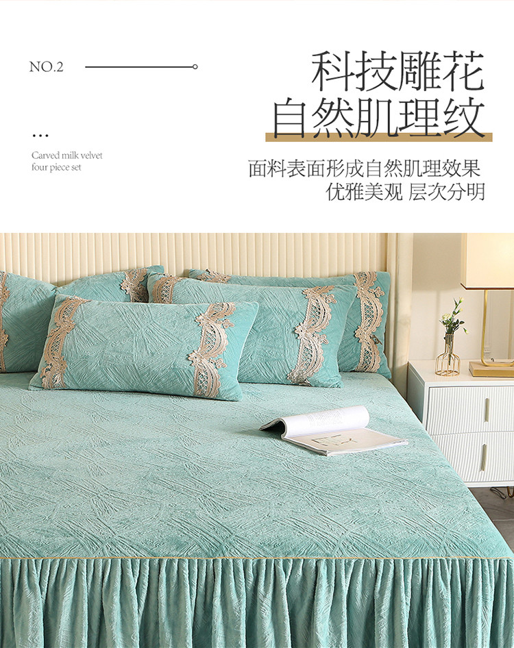 网红馆 2025新款牛奶绒雕花单品床裙被套枕套 莫兰迪-青樱