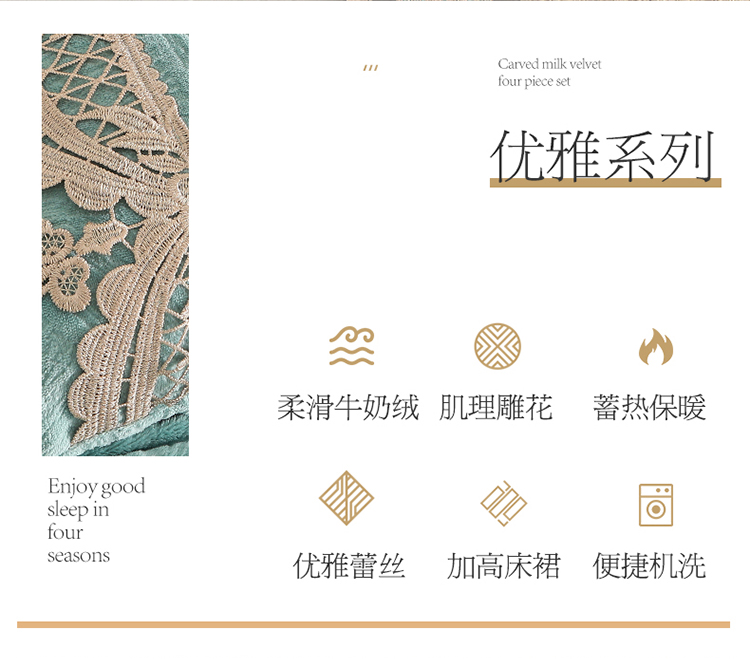 • 91家纺网 家纺一手货源 找家纺 (总)网红馆(ck家纺) 2025新款牛奶绒雕花花边四件套--国色天香,国色天香 豆沙,国色天香 卡其,国色天香 兰色