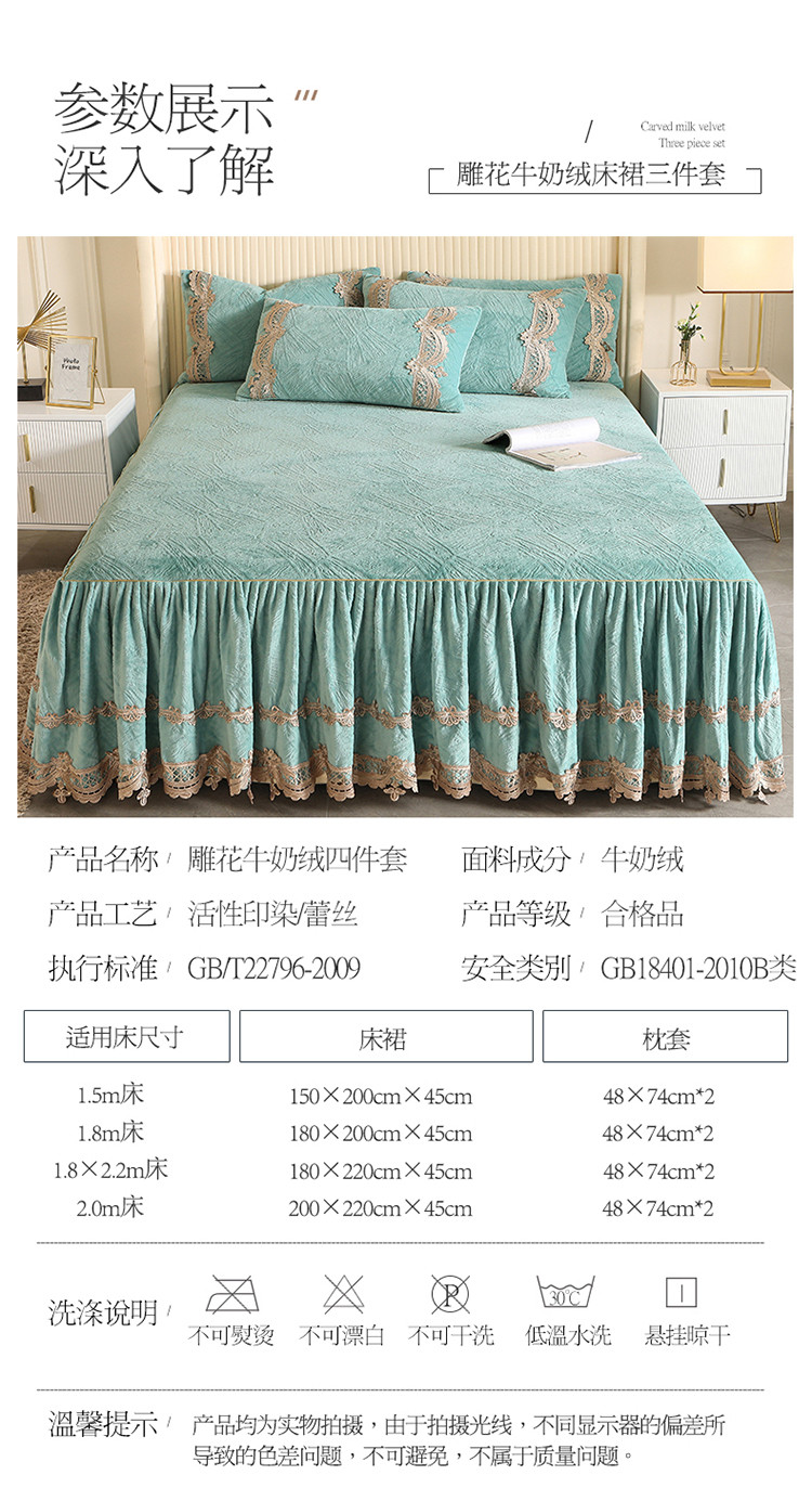 当前位置: 91家纺网 > 商品网购 > 床上用品 > 床裙 > 网红馆 2025新款牛奶绒雕花单品床裙被套枕套 莫兰迪-青樱