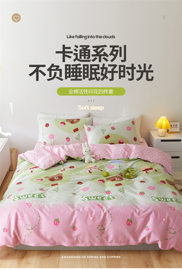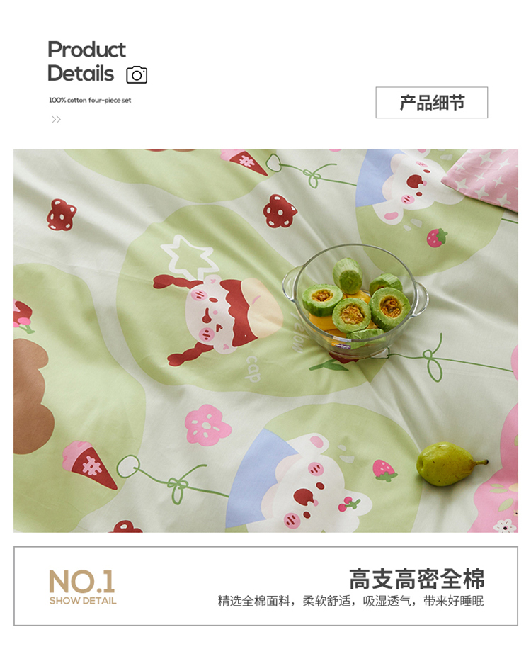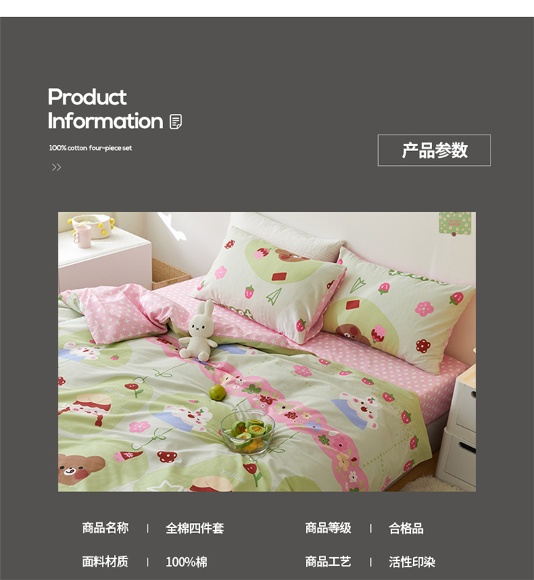 商品名称:窝米 2021新款春季全棉卡通四件套 木瓜女孩