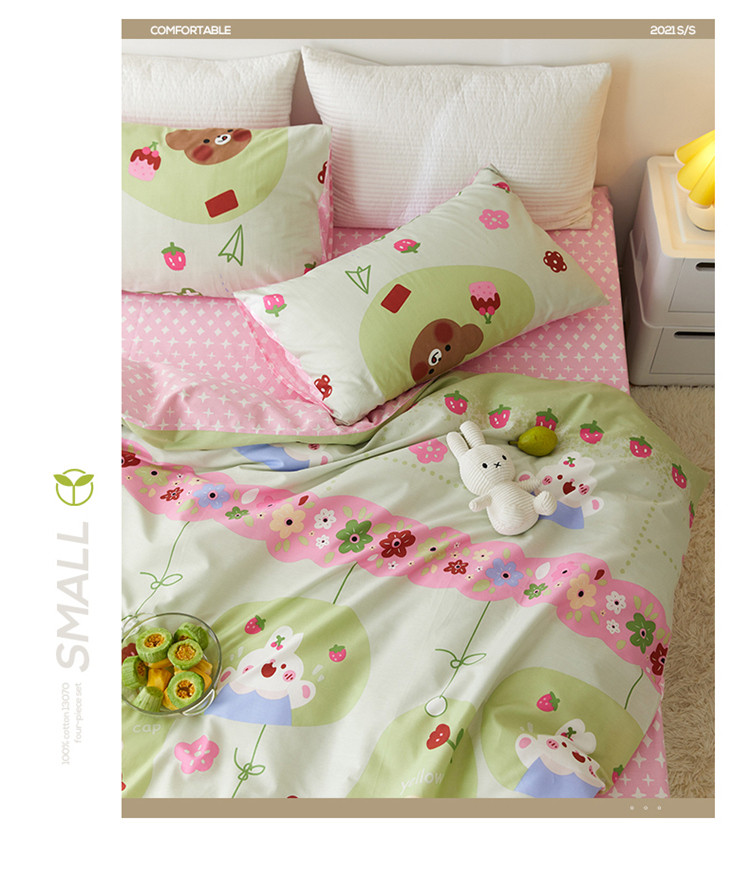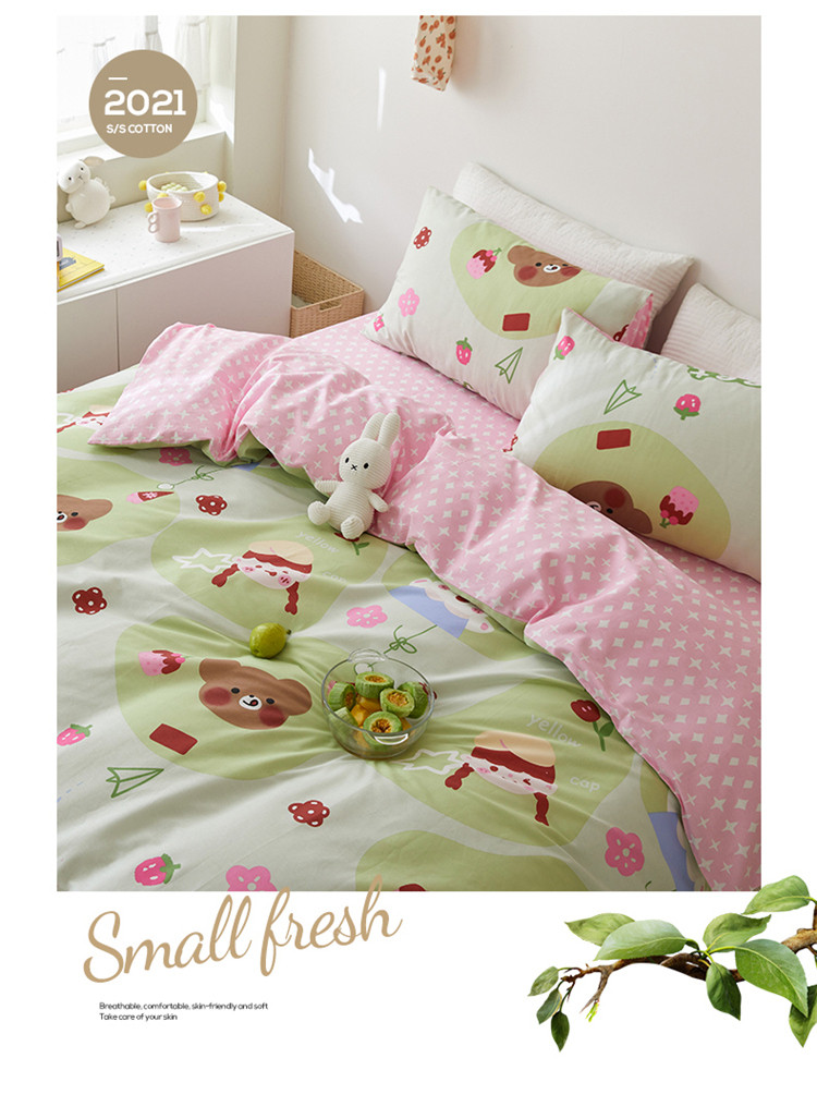 窝米 2021新款春季全棉卡通四件套 木瓜女孩