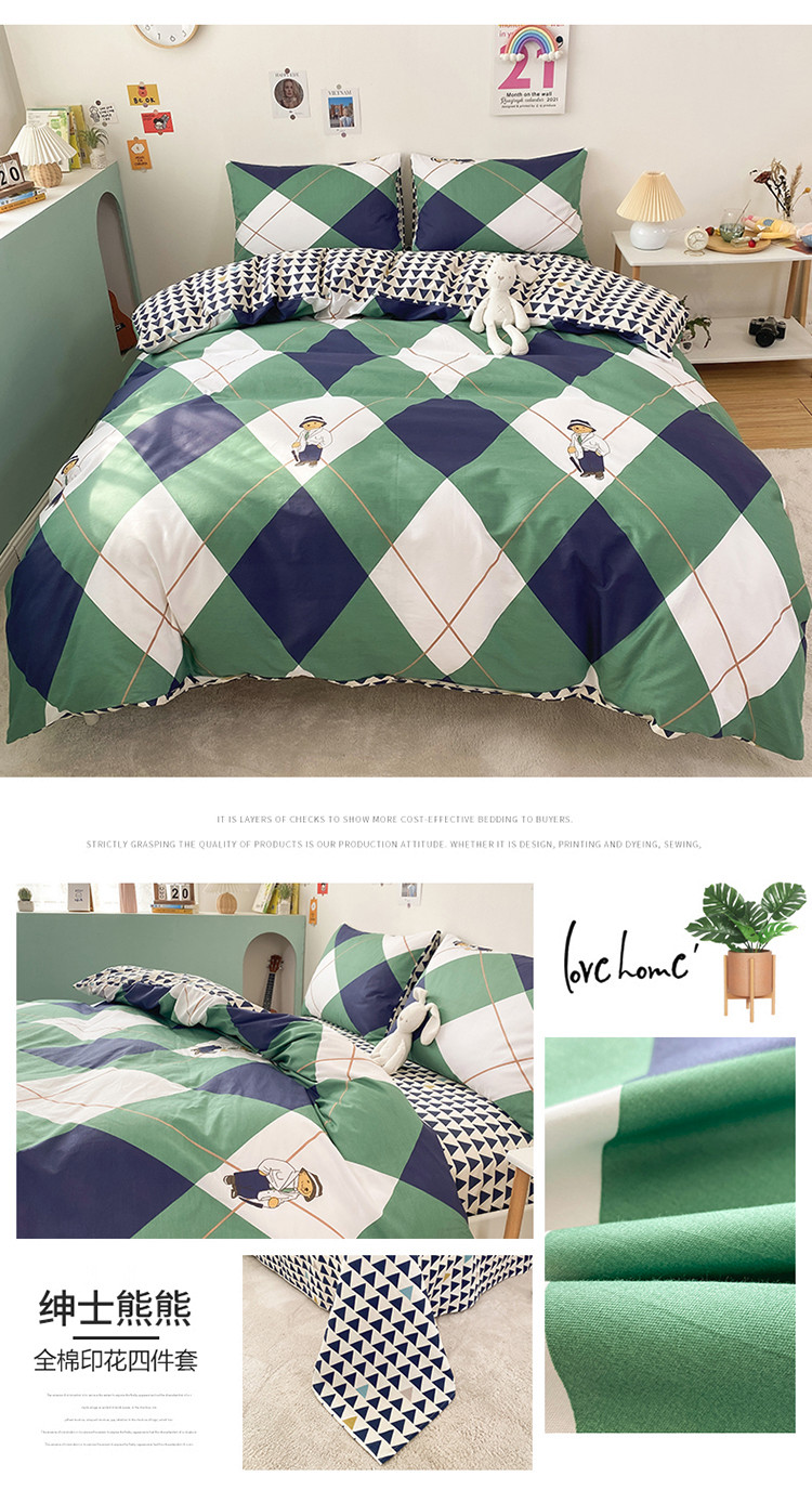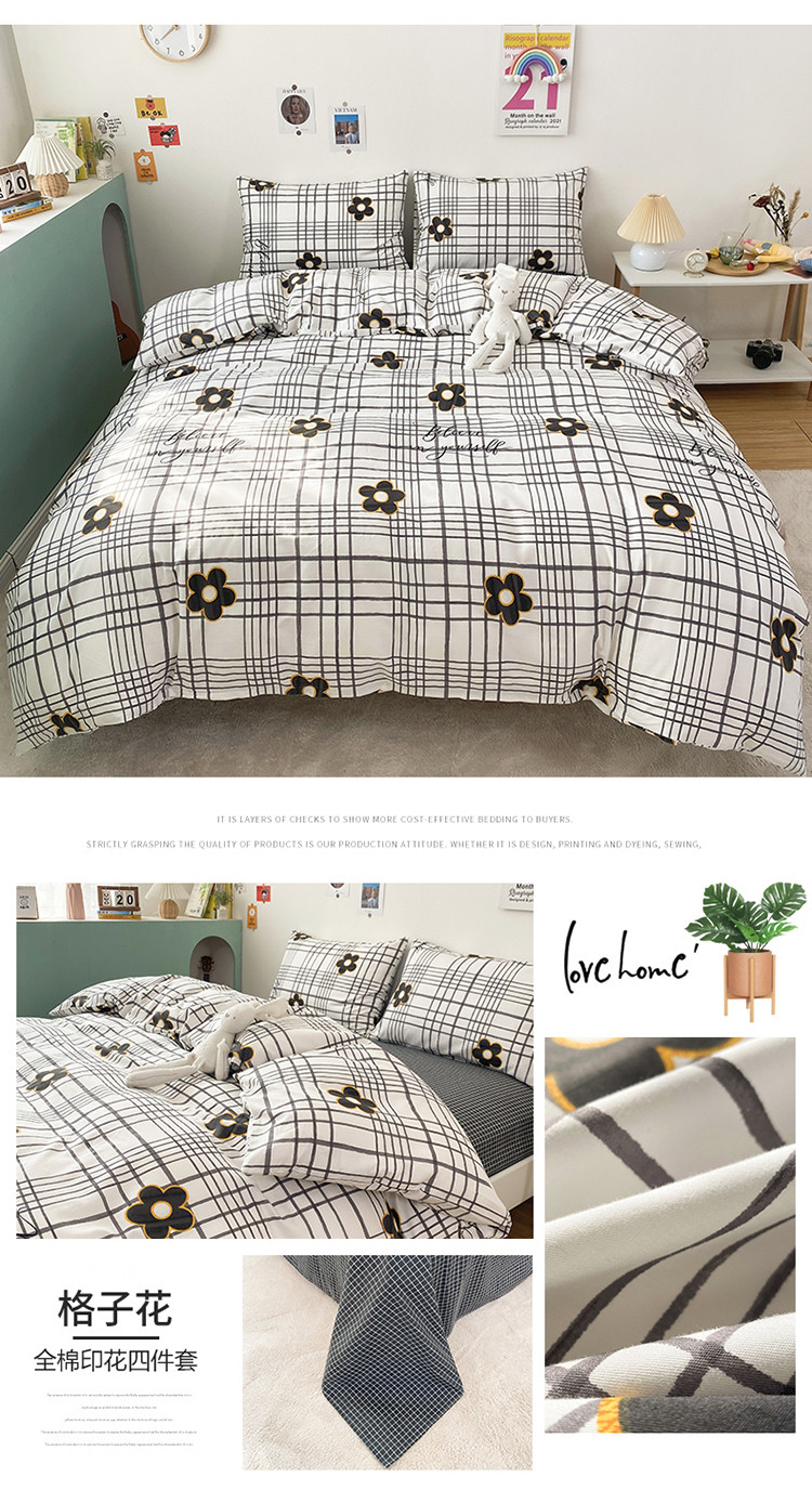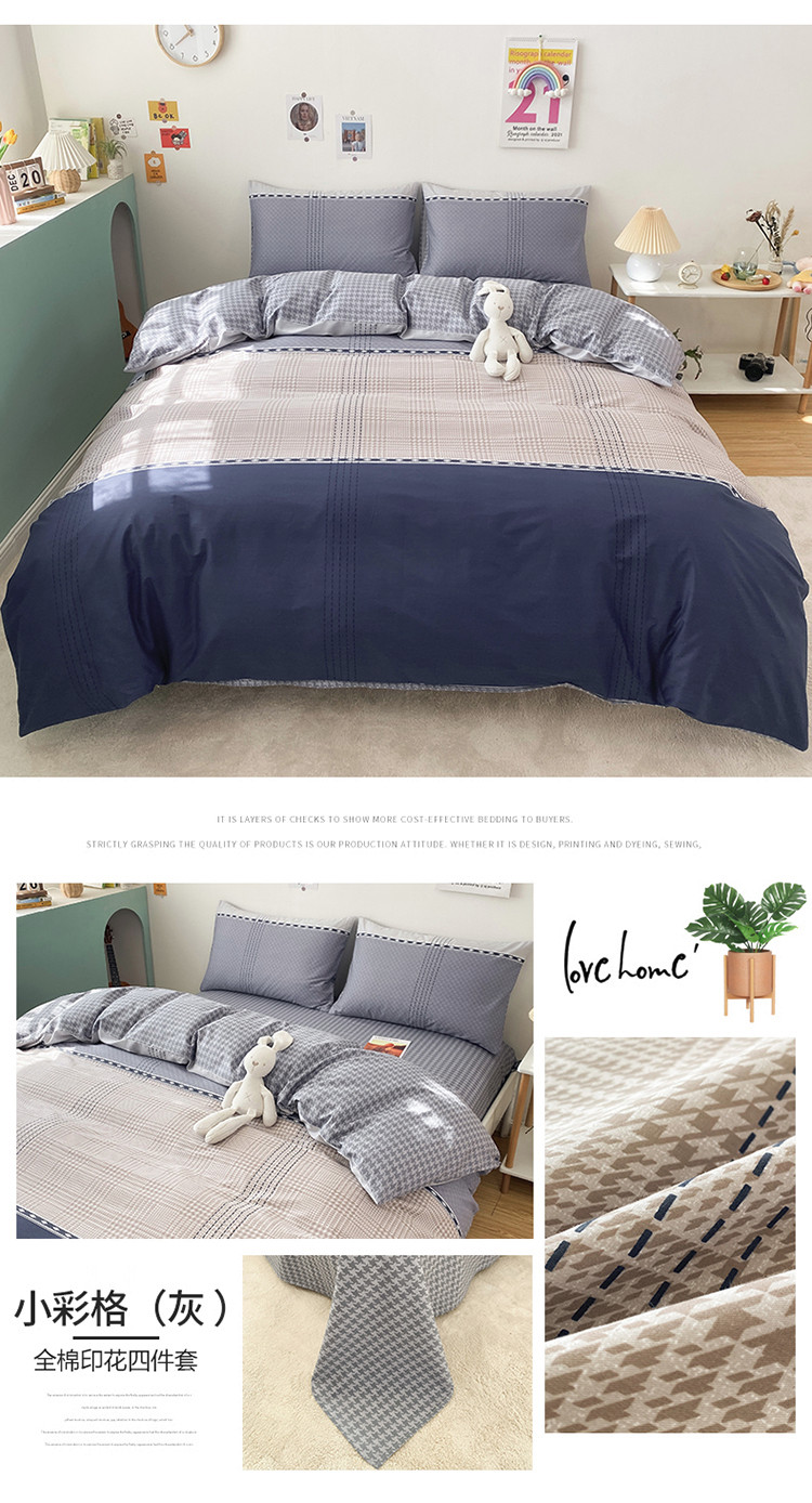 (总)2023新款40支纱全棉13070锁边工艺款四件套系列,格子爱心,嘉兰,咖条,朗尼,小兔兔,星星兔