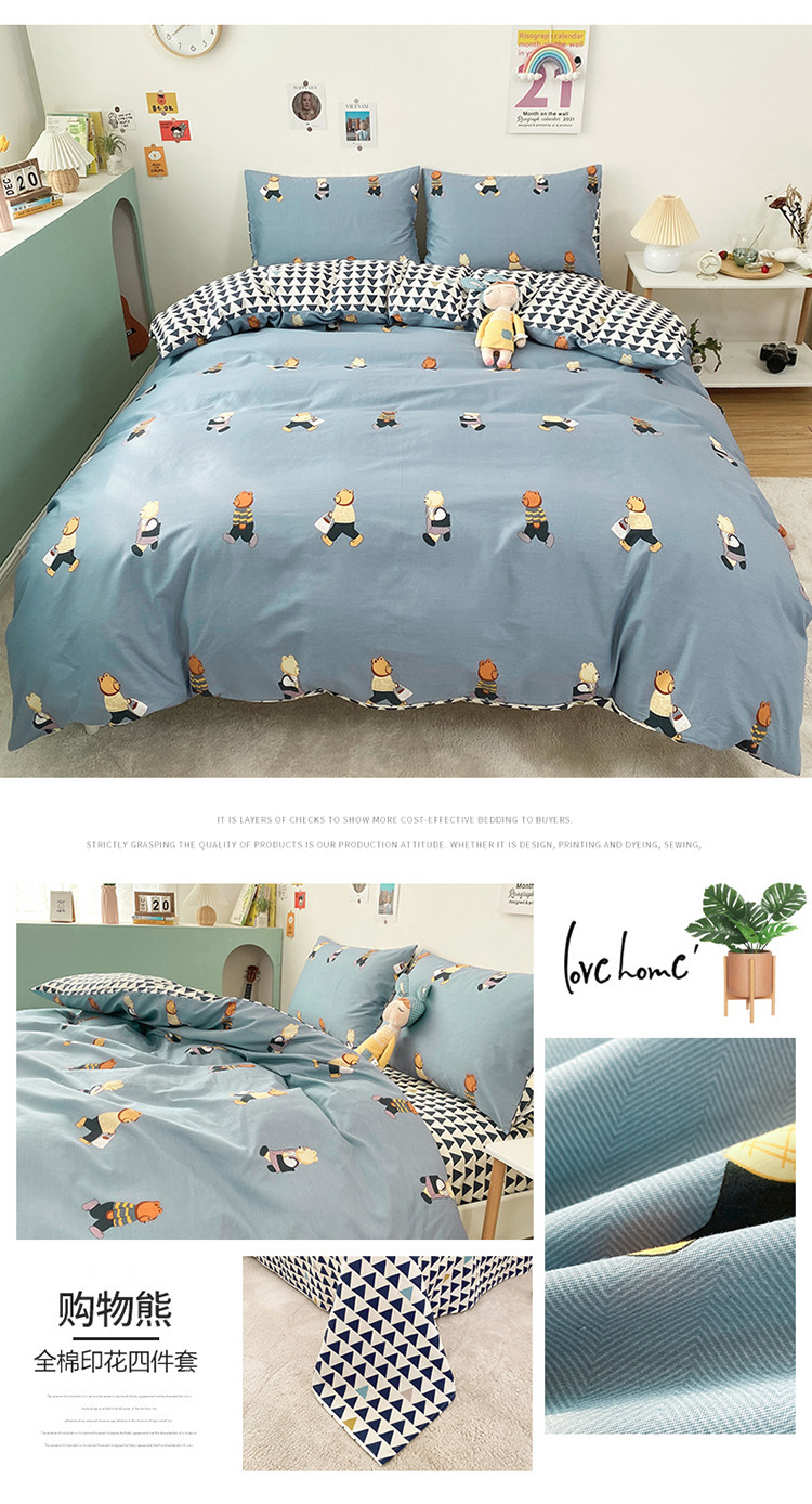 (总)珺柔 2023新款13070全棉四件套-第3批,宝宝兔,豹纹粉,北欧之春,都尚,风信子,浪漫花香,菱格熊,领结兔,绿光,玫瑰星球,梦的旋律-灰,梦的旋律-蓝,梦的旋律-绿,条纹爱心,兔时光,夏洛克,线条熊兔,小兔仙,永恒,油墨画