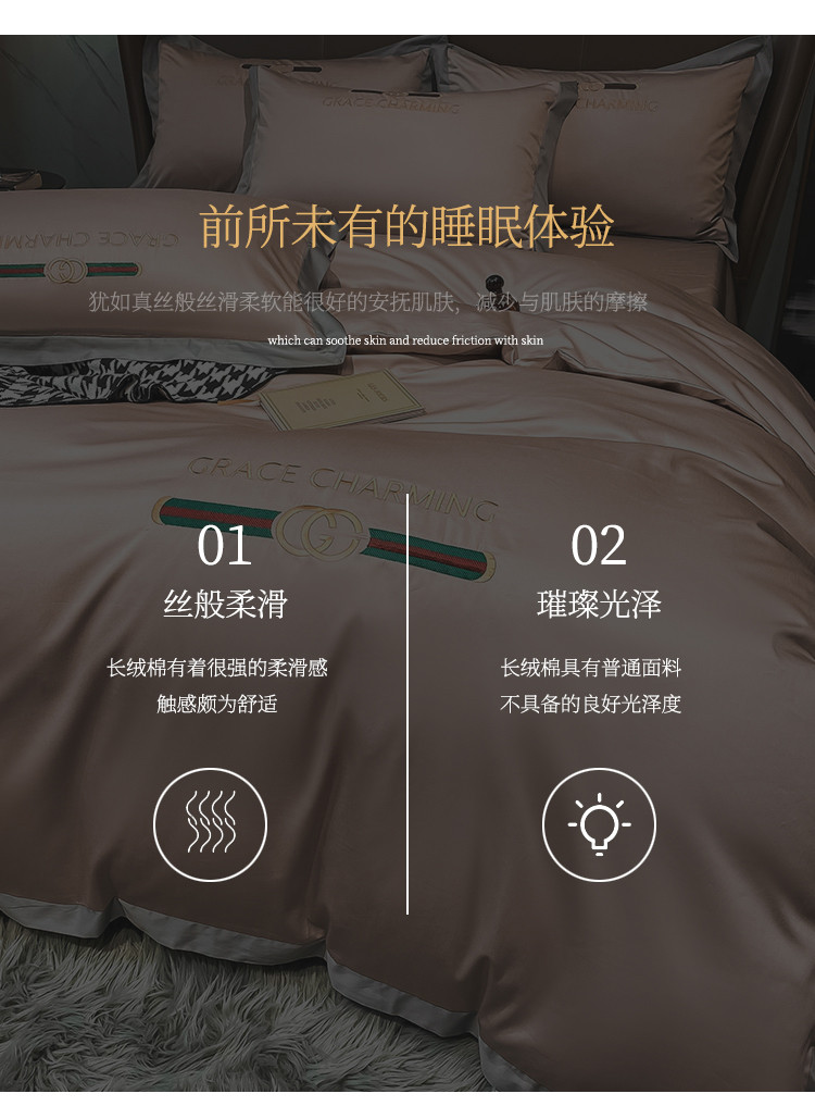 爱缦 2021新款格蕾丝实拍100支澳棉四件套 黎莎棕