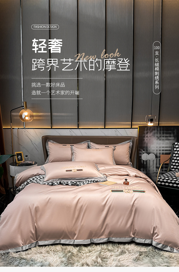 (总)爱缦 2025新款100支新疆长绒棉刺绣四件套-时光系列,时光-薄荷青,时光-芙蓉粉,时光-元气白桃