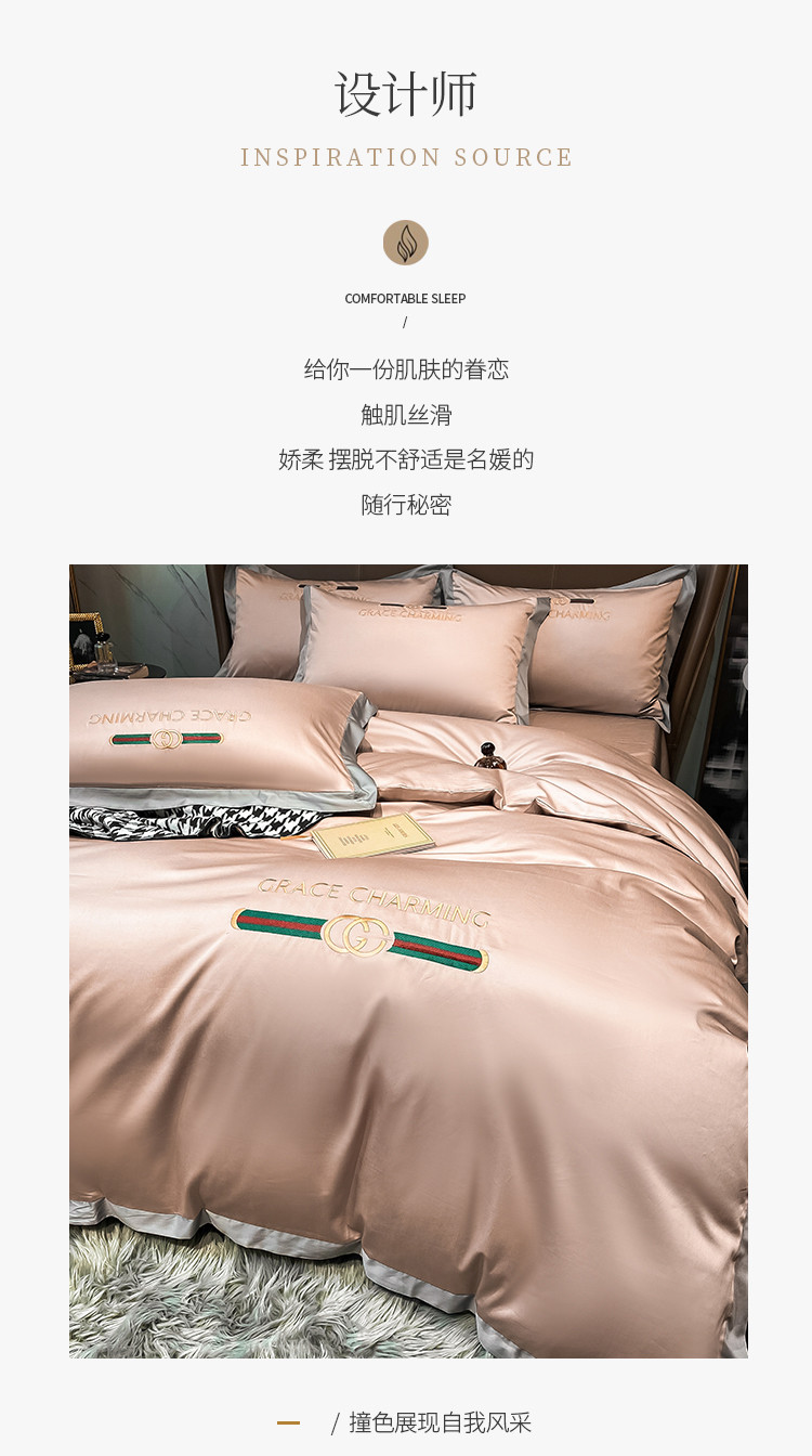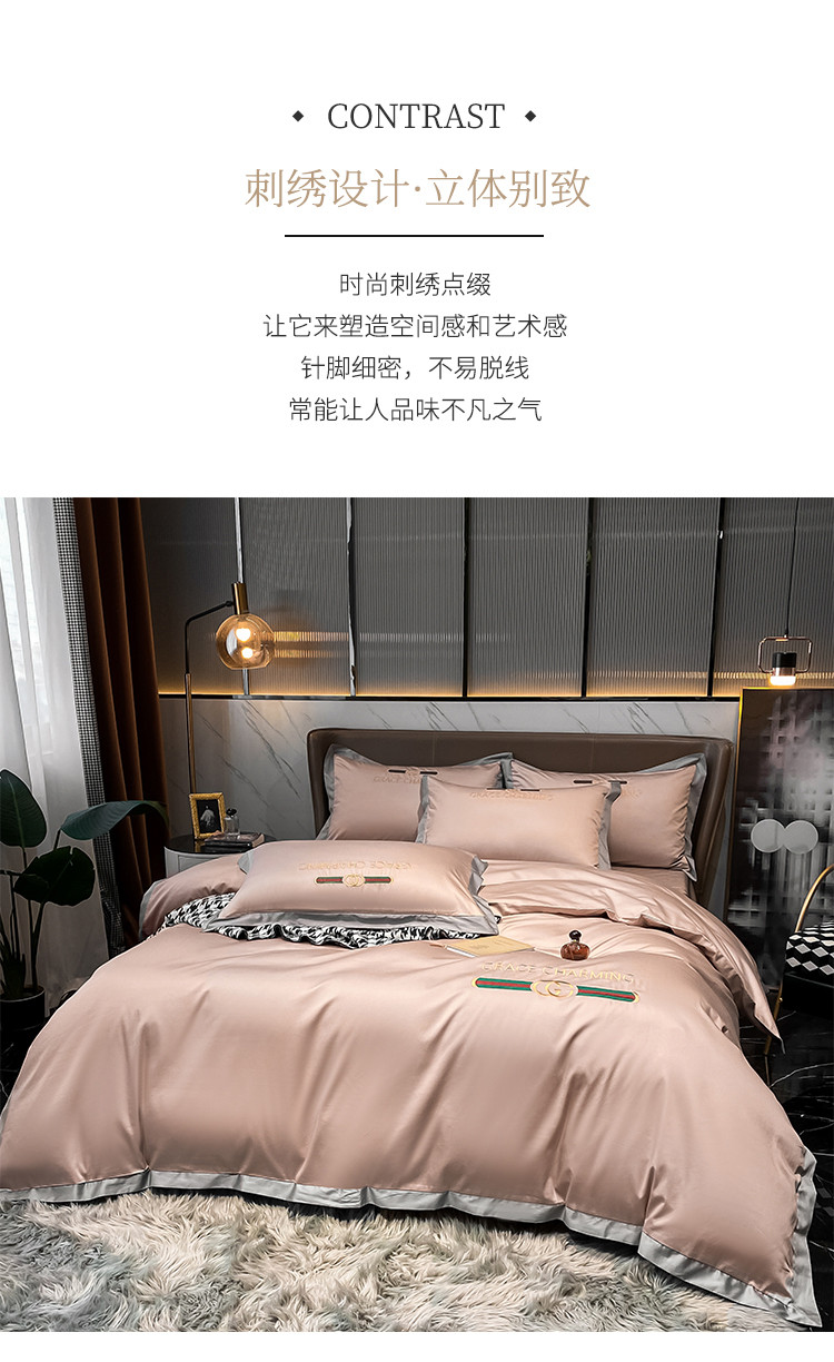 (总)爱缦 新款60支莱赛尔四件套-至真系列,蓝米驼,米白粉,浅紫,玉粉