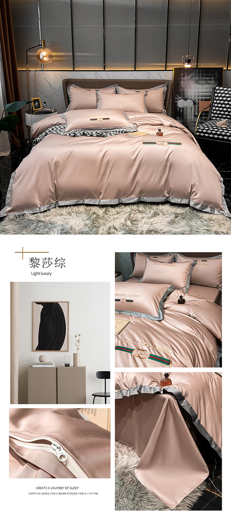 (总)2024新款A类60支陶瓷空气磨毛四件套--雾恋灰系列,雾恋灰