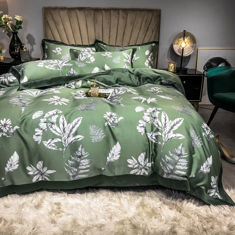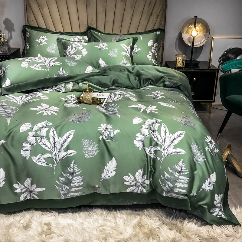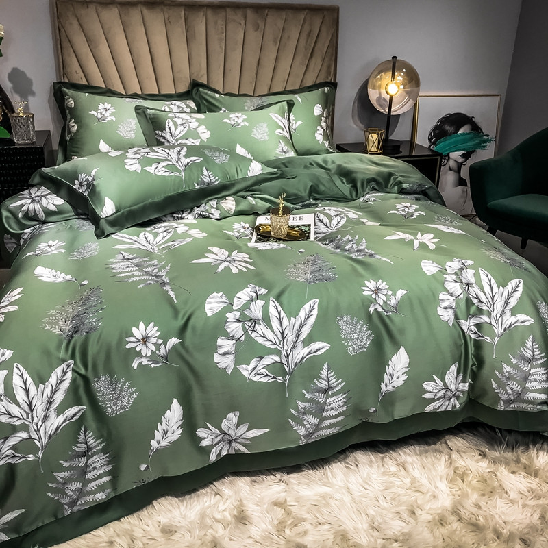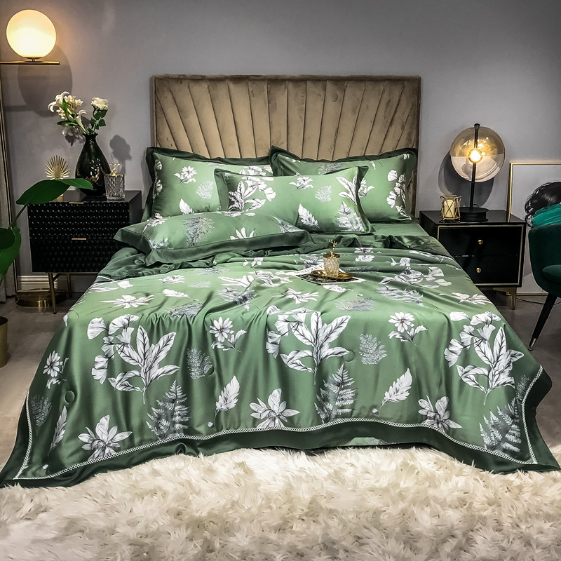 2022新款60支雅棉夏被+夏被四件套 古案(绿),古案(绿)