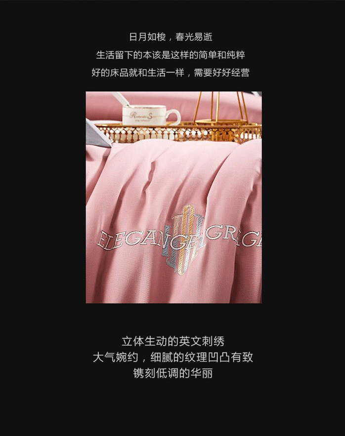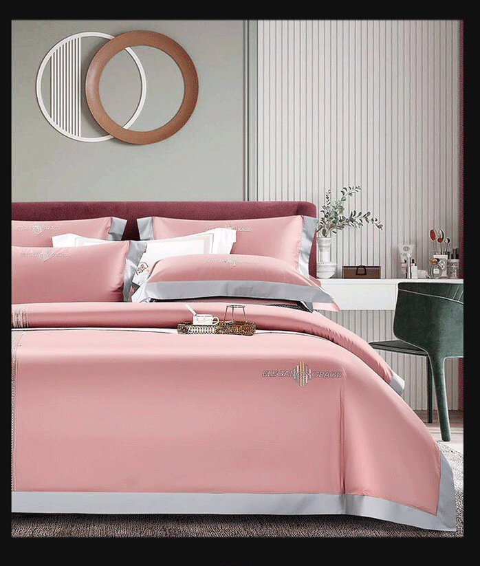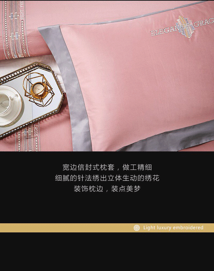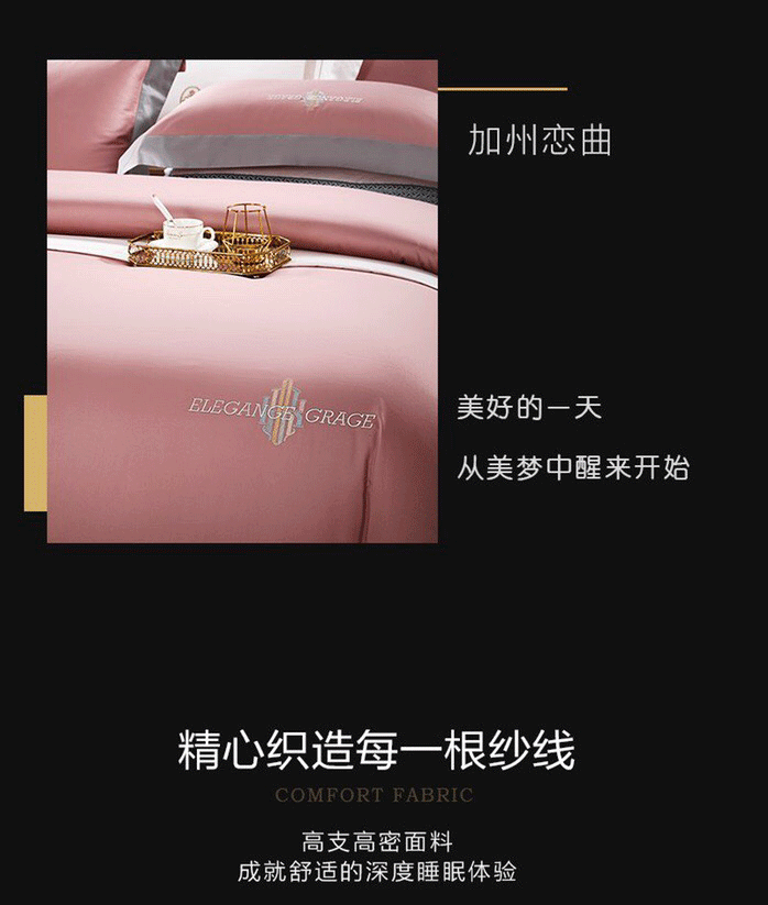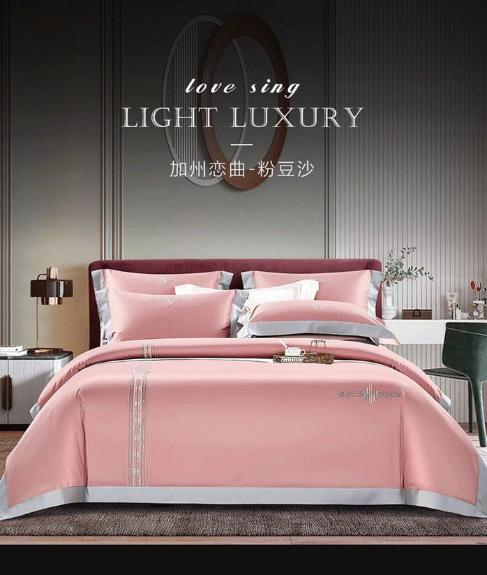 玖玖爱 2021新款160s全棉贡缎四件套加州恋曲 粉豆沙
