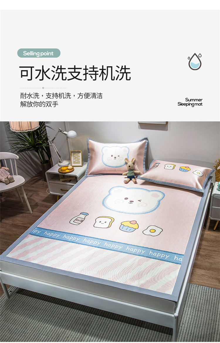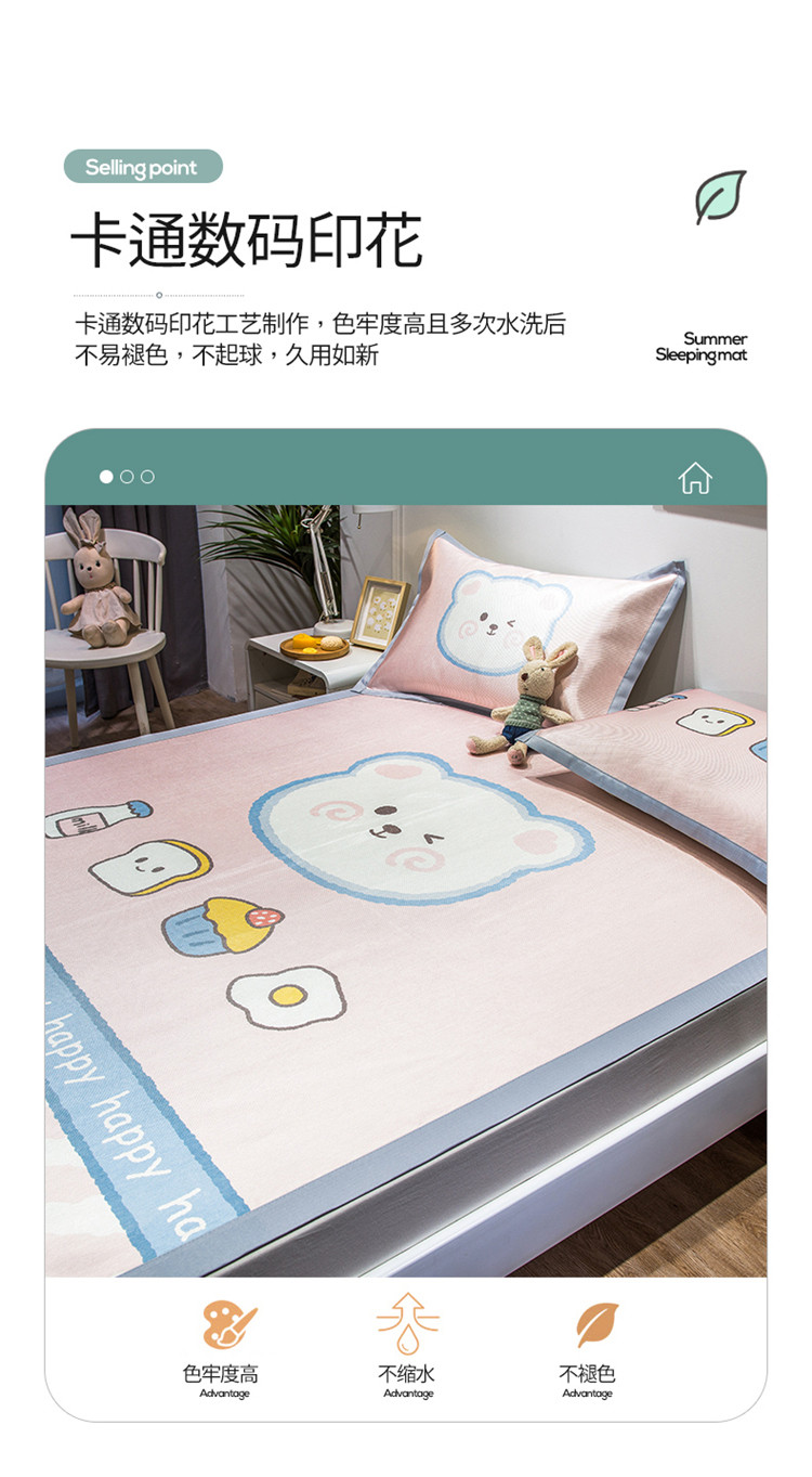 (总)懒猫家纺 2022新款学生宿舍冰丝数码印花凉席,尔雅,粉小兔,花韵,萝卜兔,清晨,手绘爱心,探索星球,甜心,小鲸鱼,小熊仔,元气兔