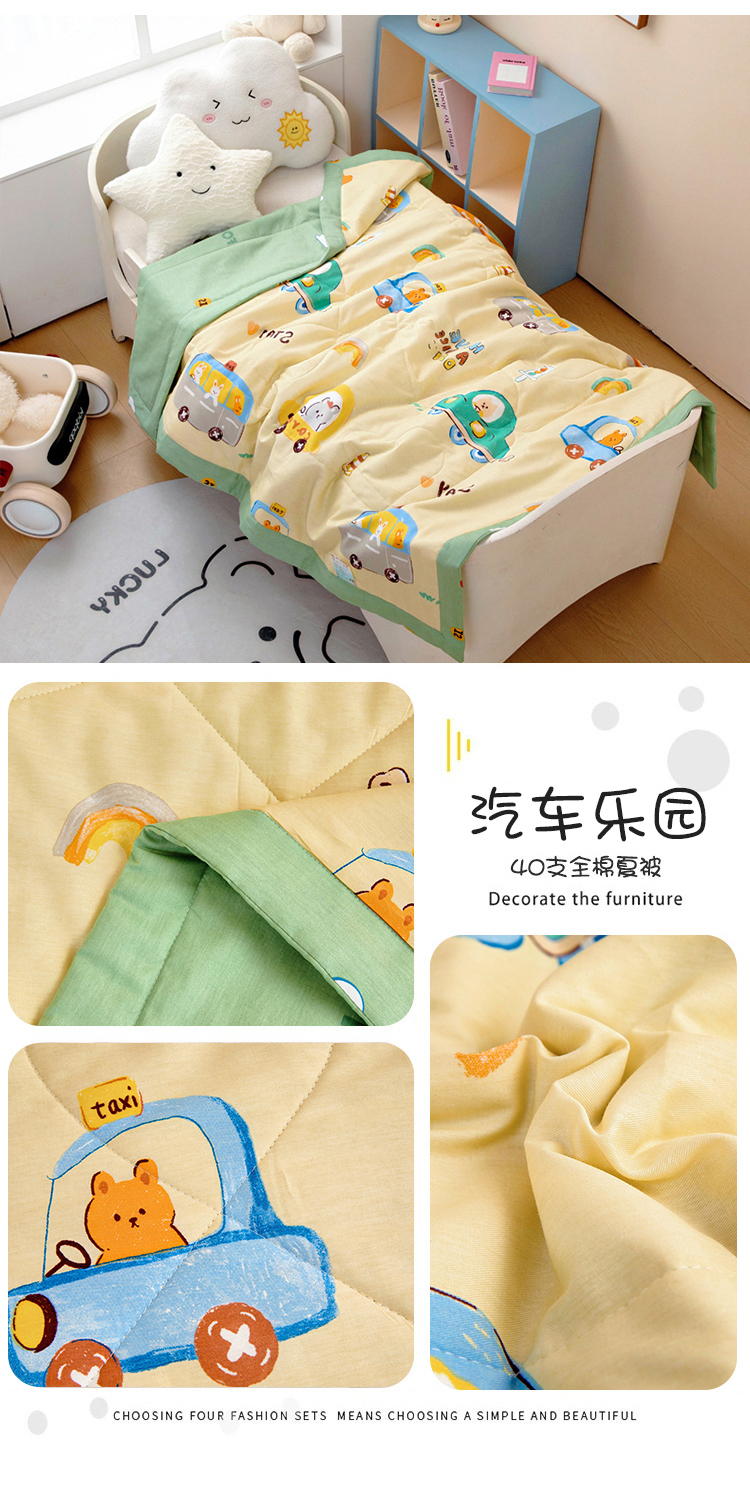 芭伯妮 2025新款40支全棉新疆棉花幼儿园儿童夏被 汽车乐园,汽车乐园