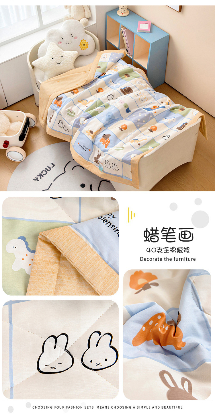(总)芭伯妮 2025新款40支全棉新疆棉花幼儿园儿童夏被,白桃公主,虎头虎脑,嘉年华,开学季,恐龙家族-黄,恐龙家族-绿,奶油兔,小兔叽,幸福宝贝,宝宝巴士-蓝,宝宝巴士-米,动漫恐龙-米,欢乐萌熊,里德熊,彩虹喵,蜡笔画,汽车乐园
