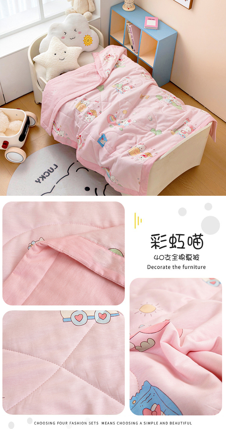 (总)芭伯妮 2025新款全棉三丽鸥大豆夏被 纯棉儿童夏被夏凉被空调被,蝴蝶结kitty,活力帕恰,凯蒂公主,气球库洛米,甜品玉桂狗,星星库洛米,洋娃娃A版(A、B版随机发货),洋娃娃B版(A、B版随机发货)