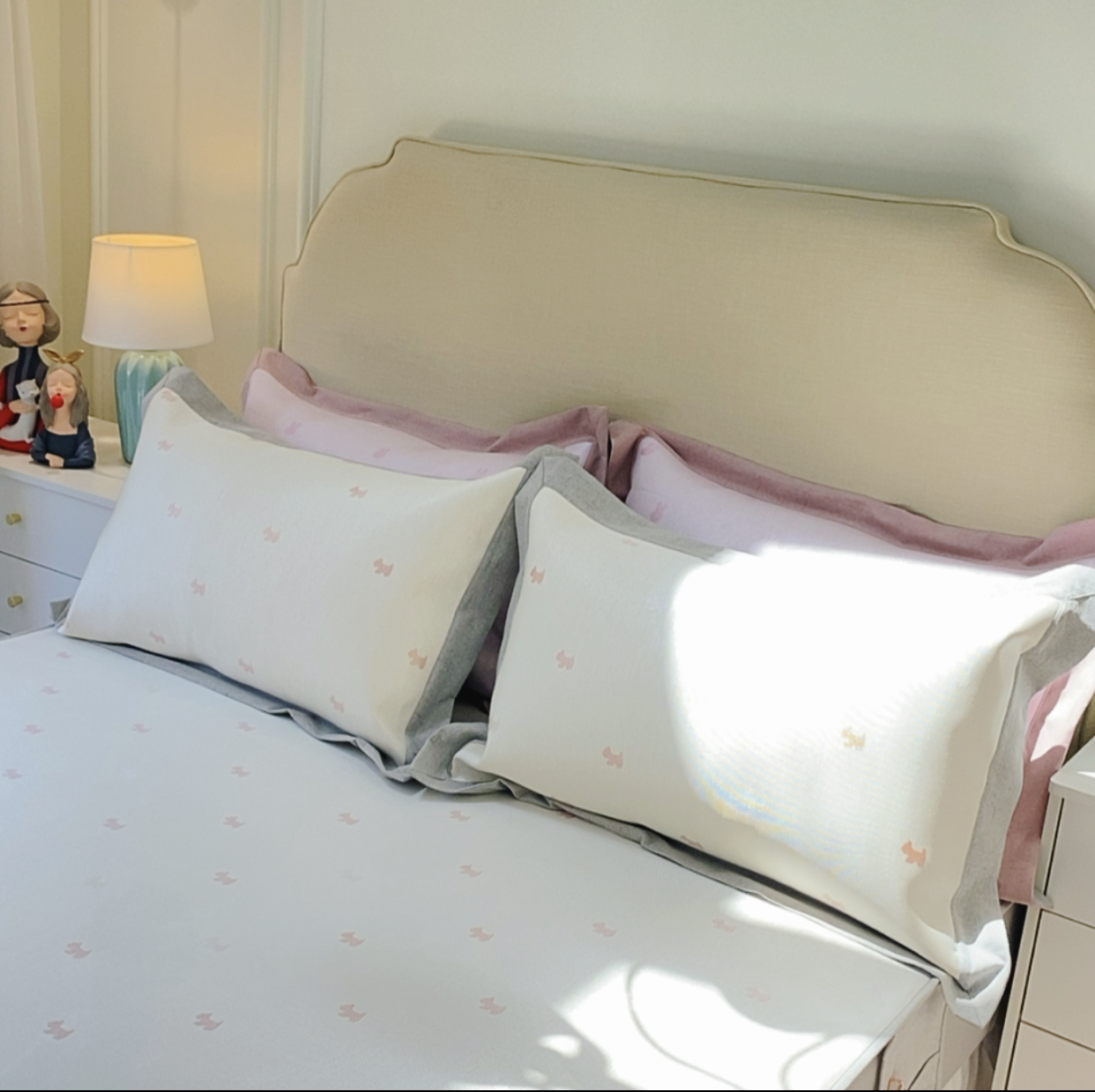 (总)木希2025春夏新款可水洗冰丝席幻彩刺绣床笠系列-场景一,爱心刺绣,格调爱心,脚丫刺绣,森林小熊,小怪兽,小秋秋乐园,熊猫乐园