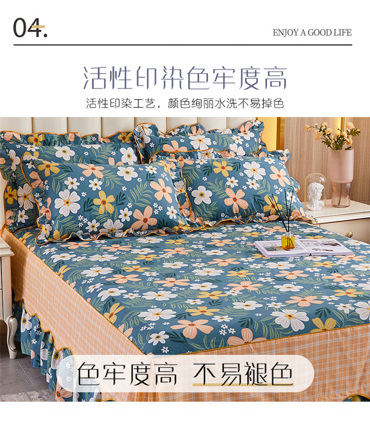 • 91家纺网 家纺一手货源 找家纺 十个点 2021新款弯边床裙花园假期-绿