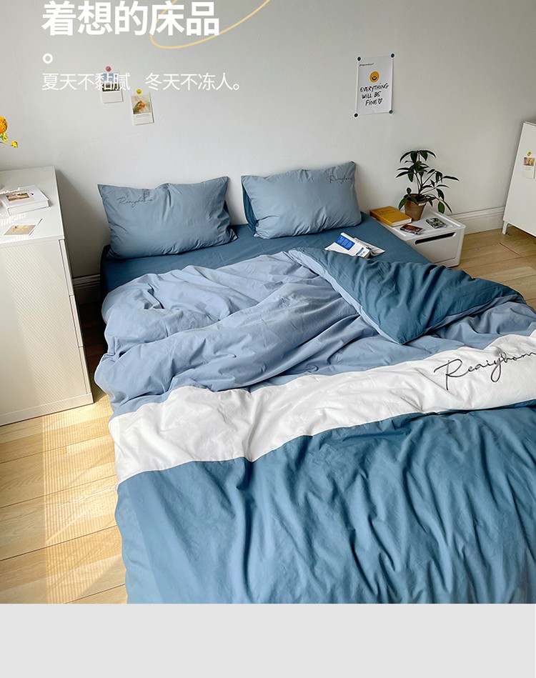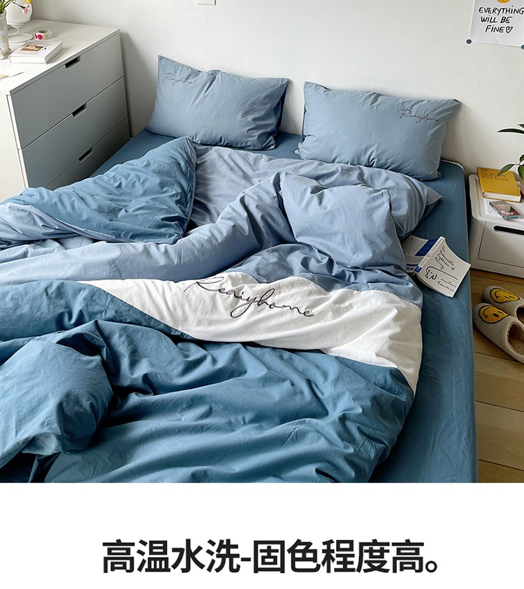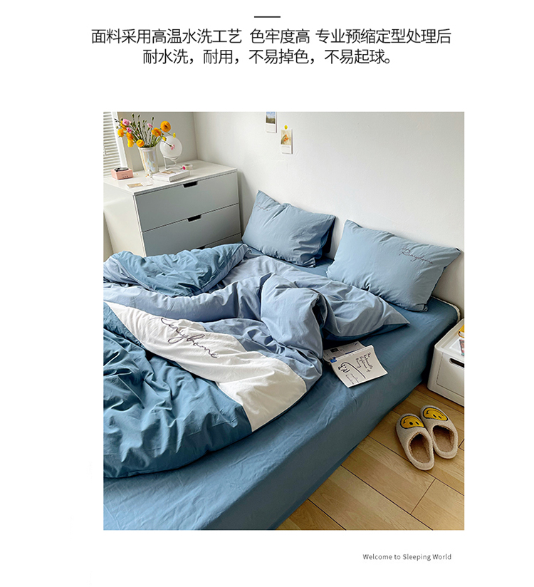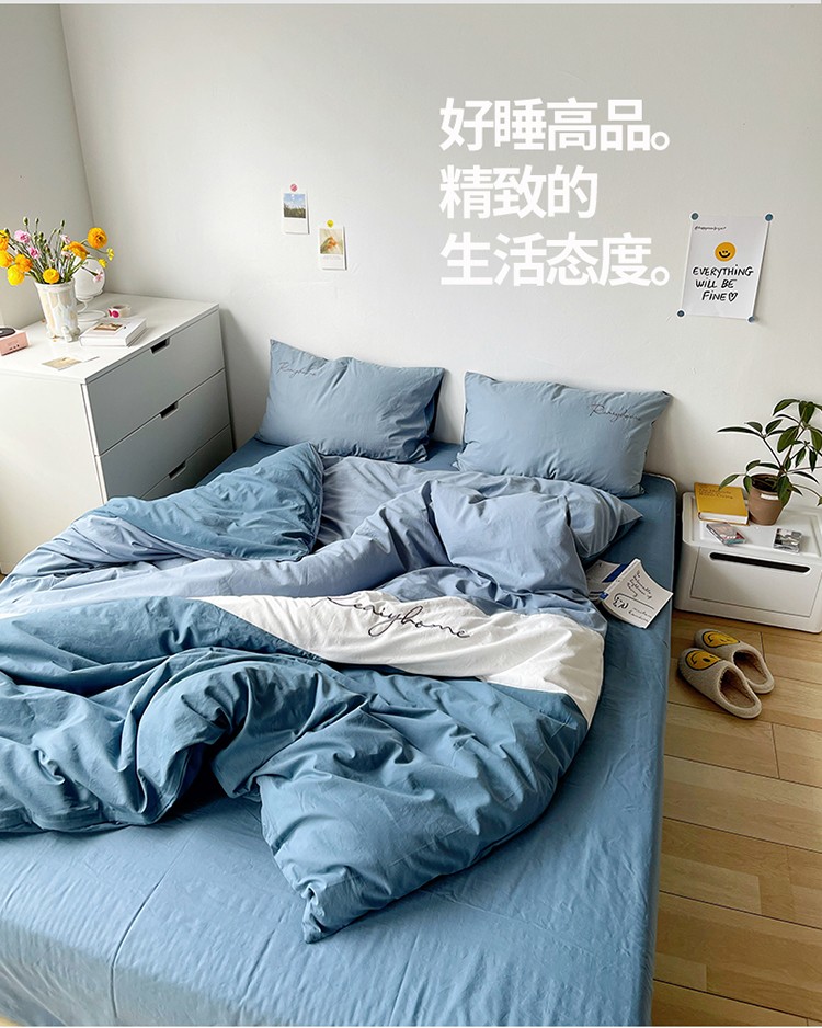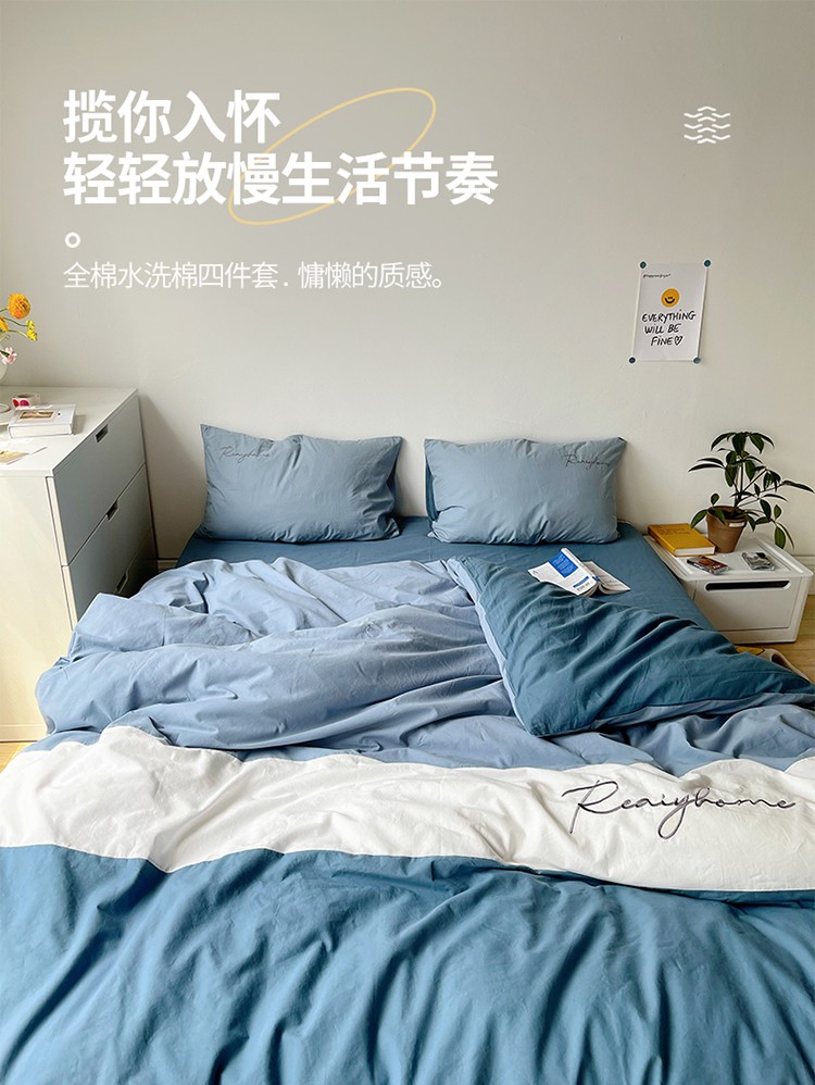 蓝巢家纺 2021新款全棉水洗棉四件套早安系列 早安宾利蓝