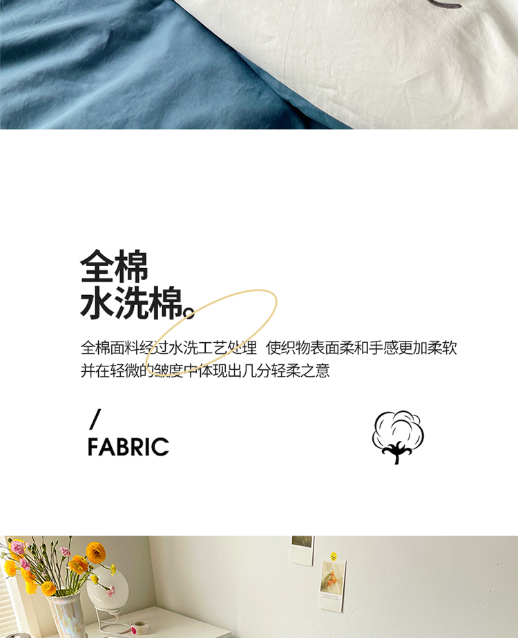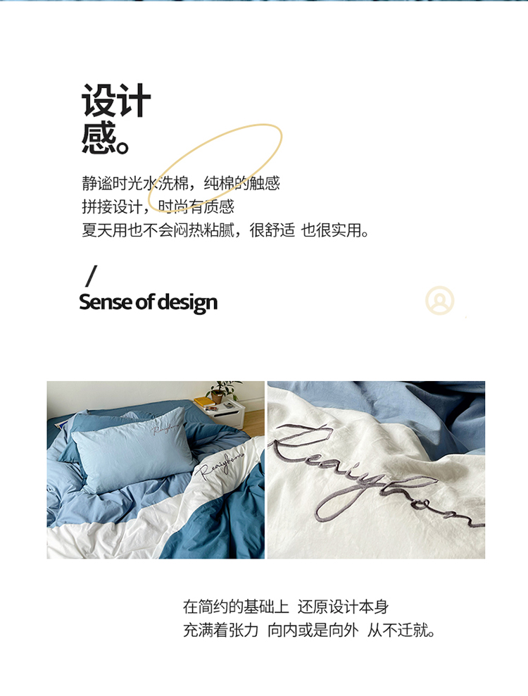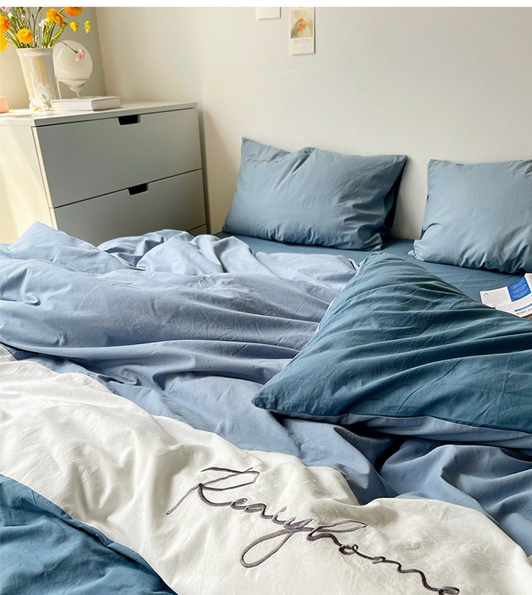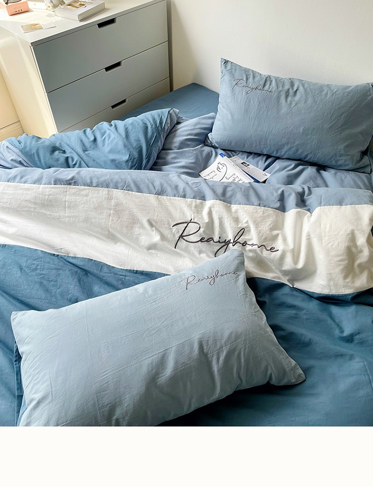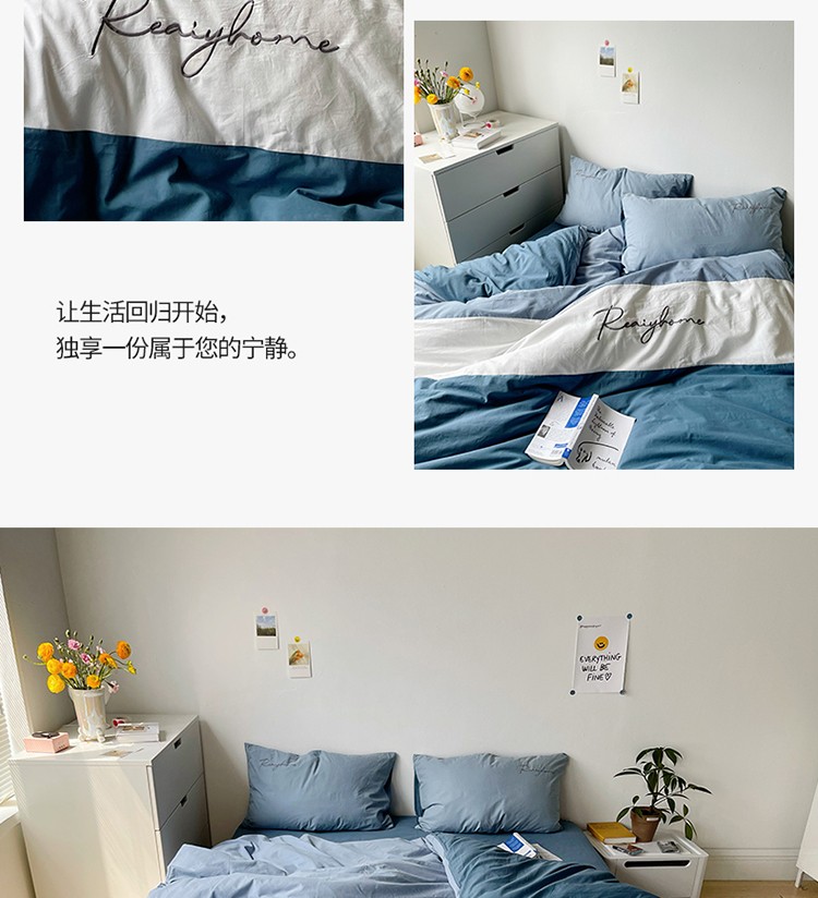 蓝巢家纺 2021新款全棉水洗棉四件套早安系列 早安宾利蓝