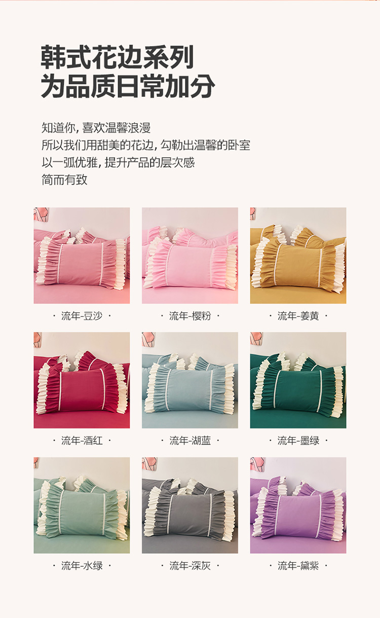 商品名称:莉莉安2025新款荷叶边亲肤磨毛单枕套-流年系列 流年-帛玉