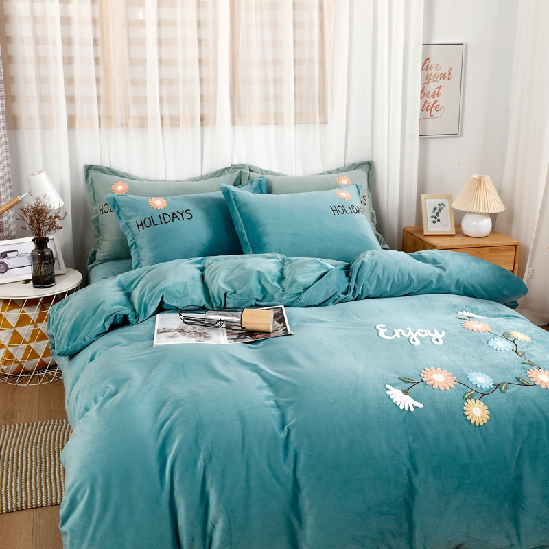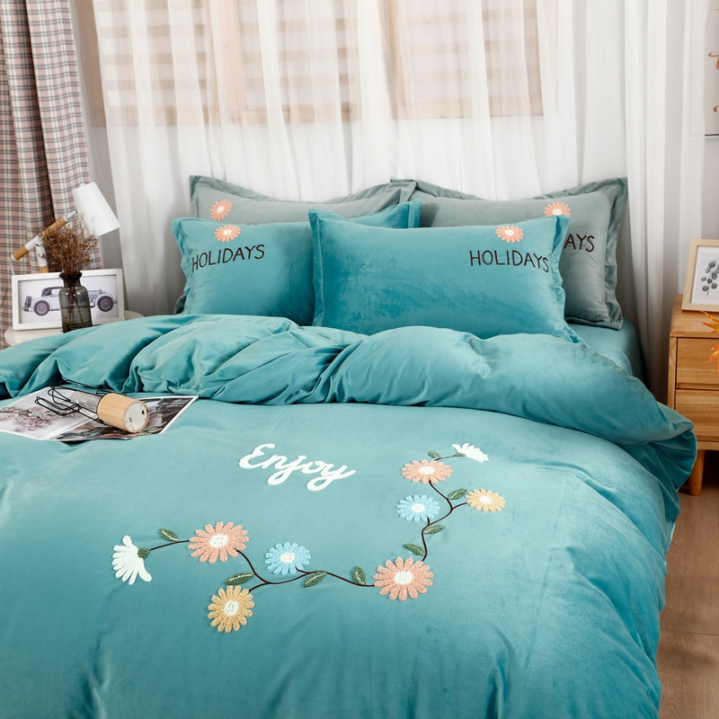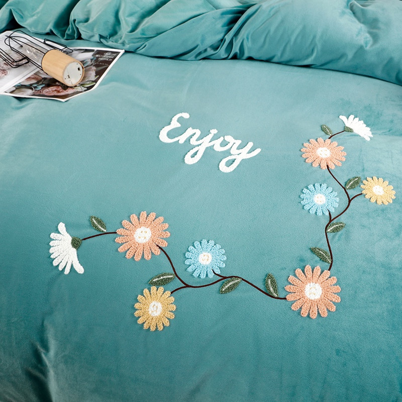 商品名称:玖玖爱 2021新款宝宝绒四件套花开朵朵系列 薄荷绿
