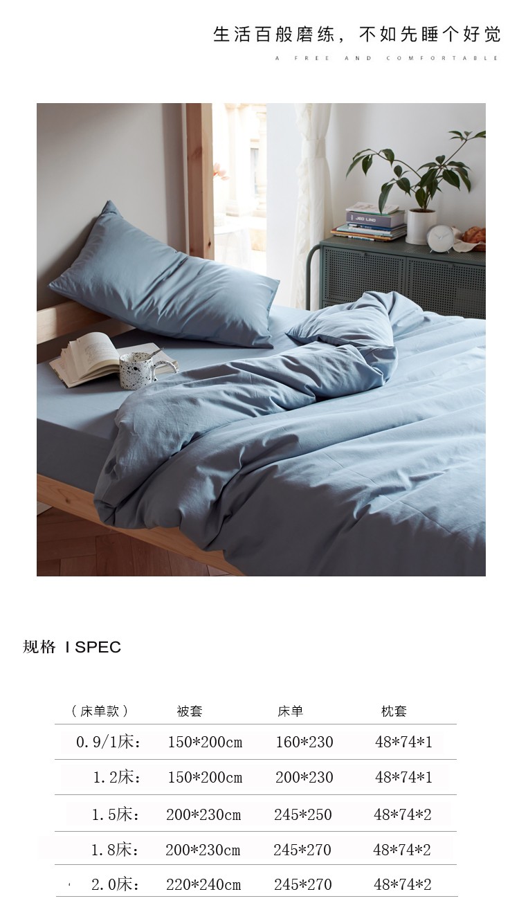 商品名称:全棉纯色水洗棉四件套纯棉简约学生寝室上下铺宿舍单人床上三件套