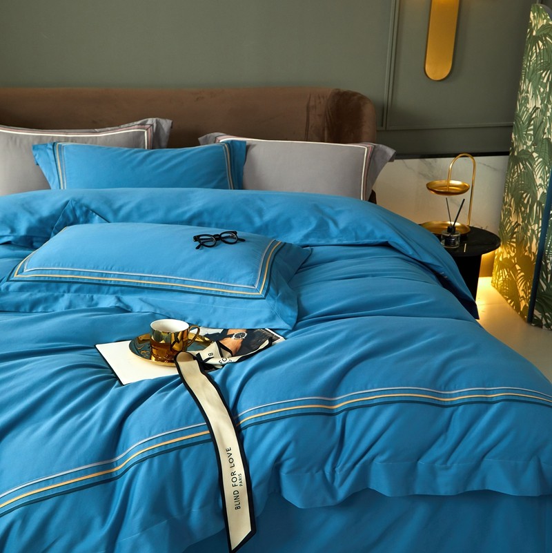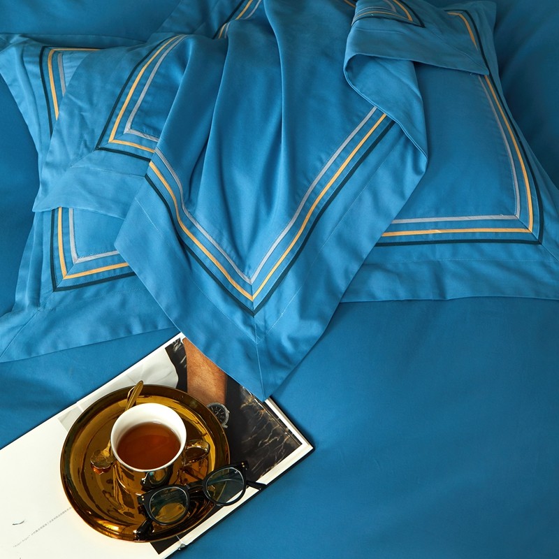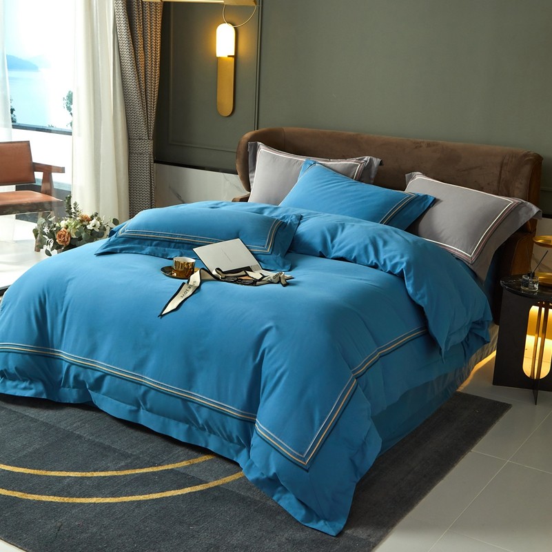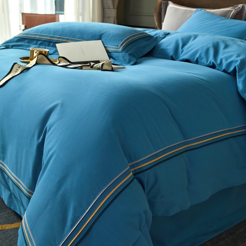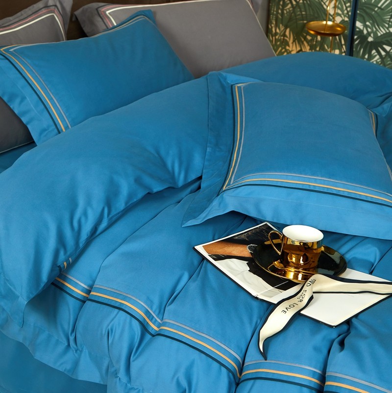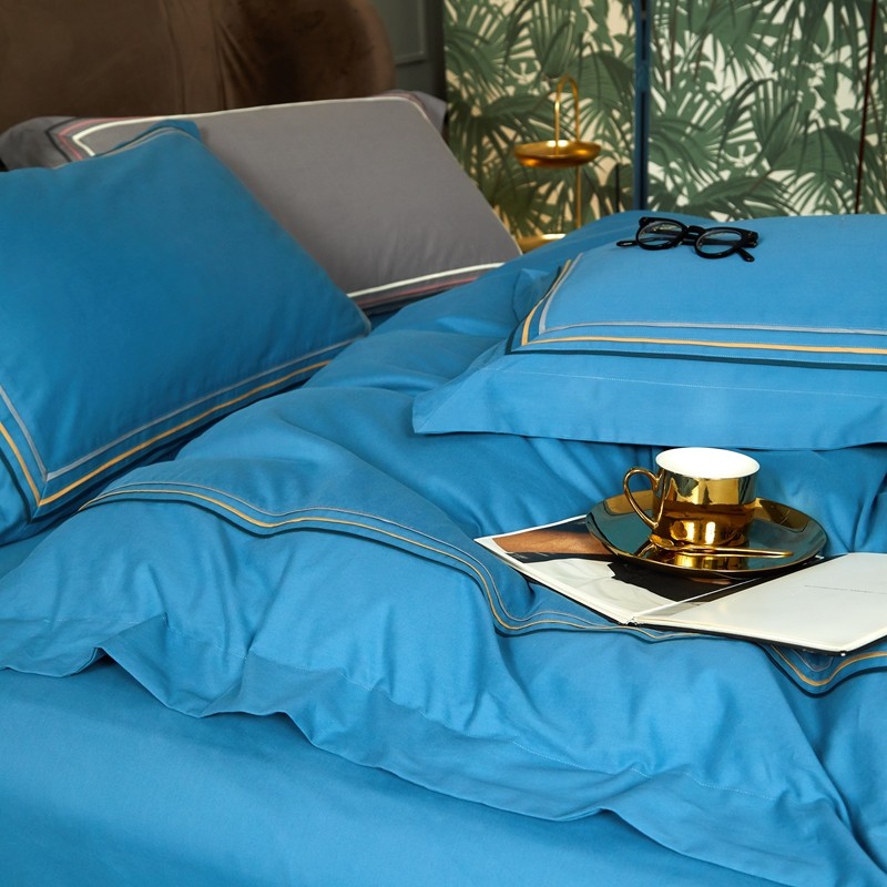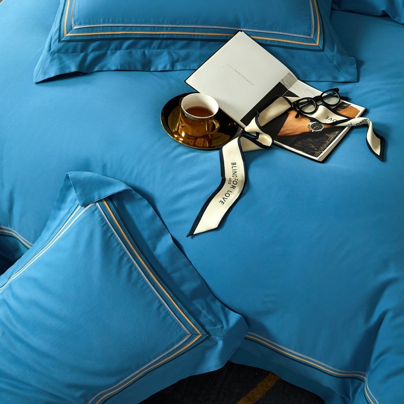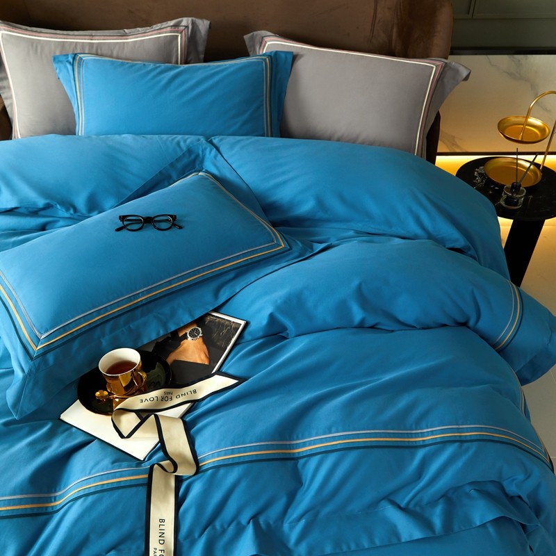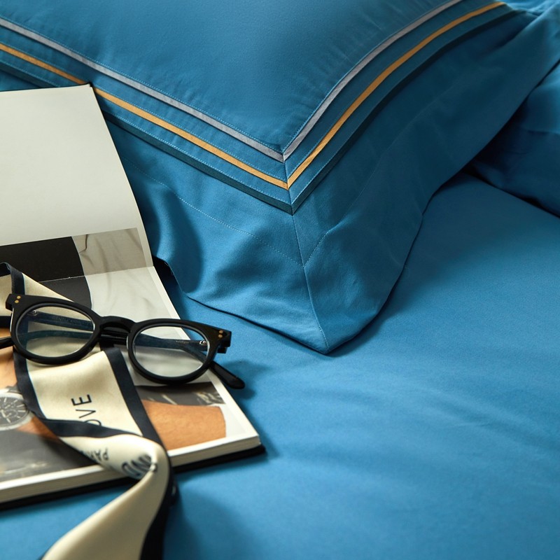 威克凯丽 秋冬60拼接磨毛四件套 花栖寻梦-宝石蓝