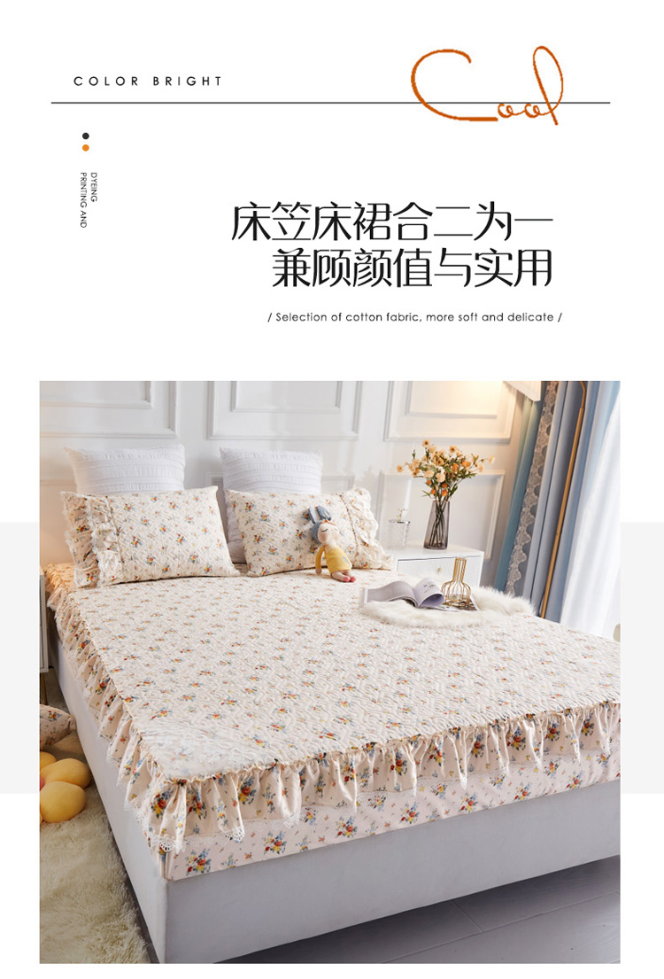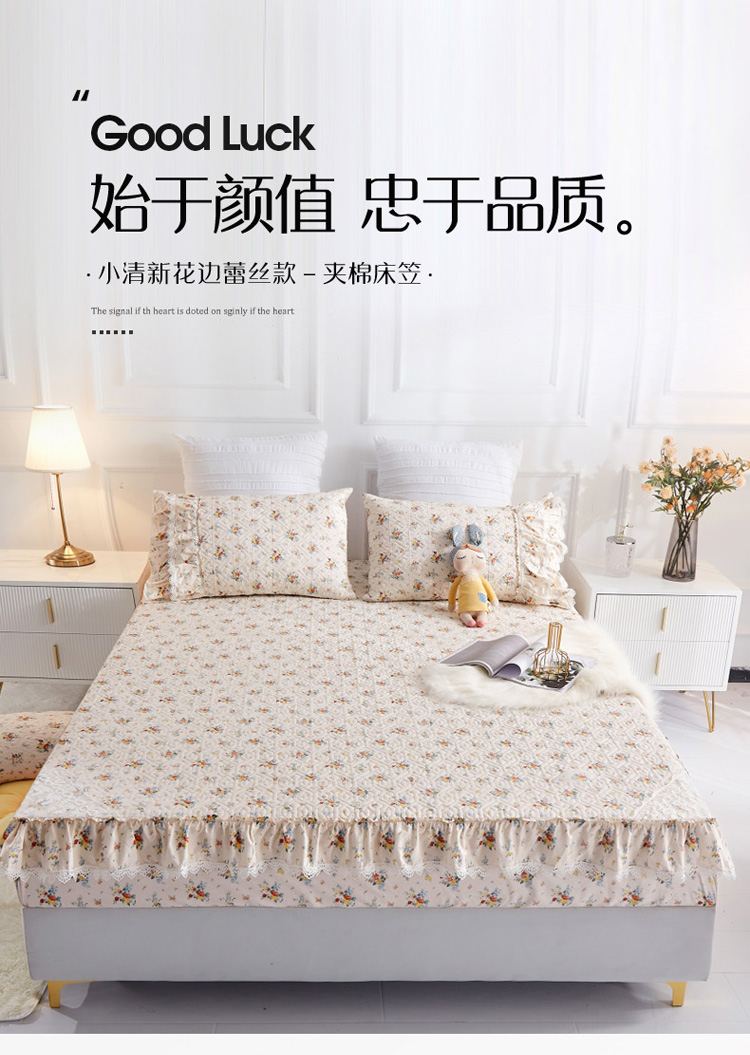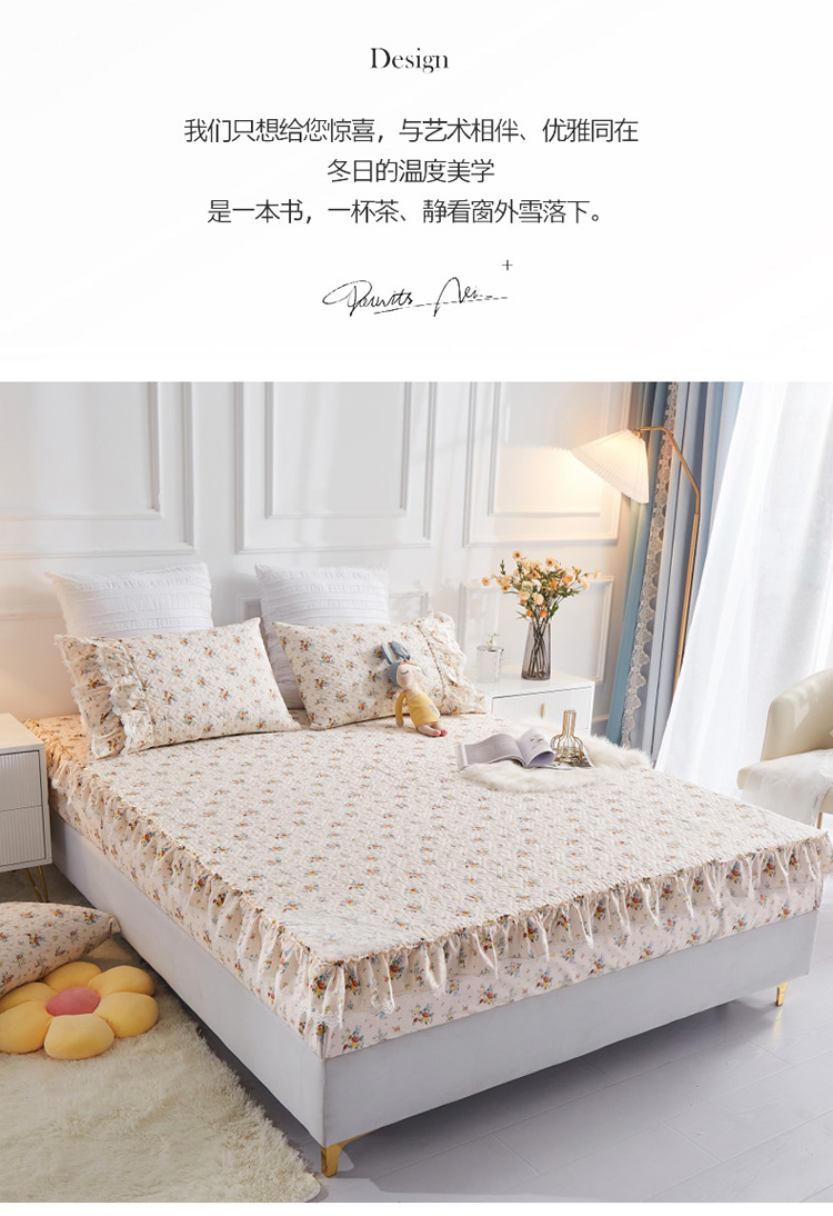 菊上家纺 2021新款小清新花边床笠款浅小米