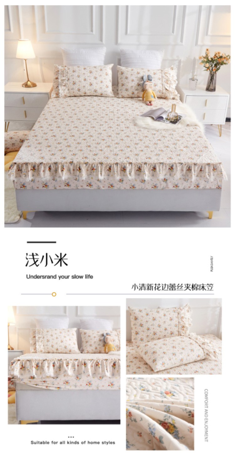 当前位置: 91家纺网 > 商品网购 > 床上用品 > 床笠 > 菊上家纺 2021新款小清新花边床笠款浅小米