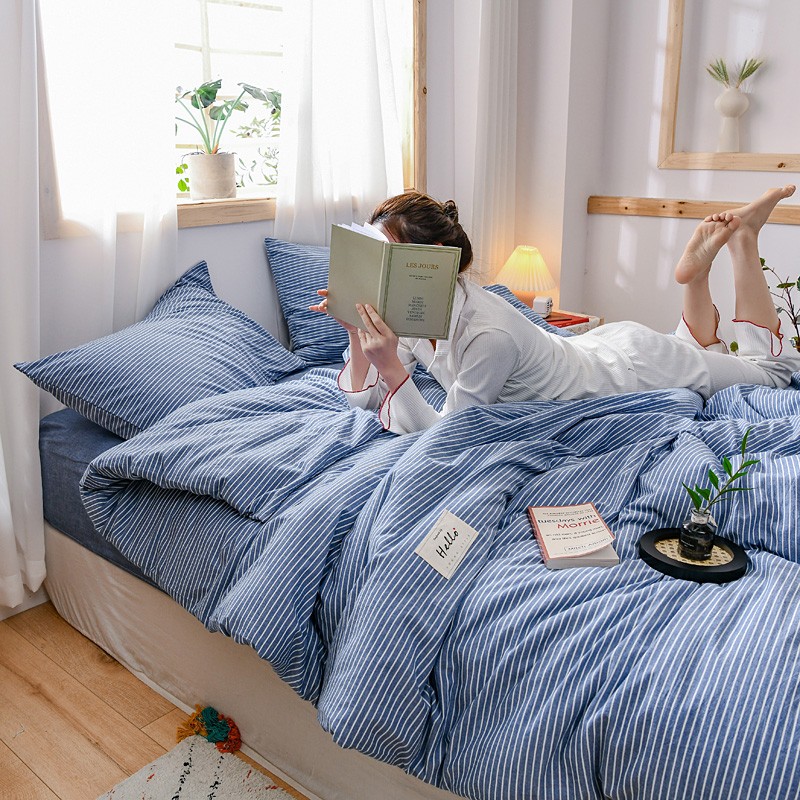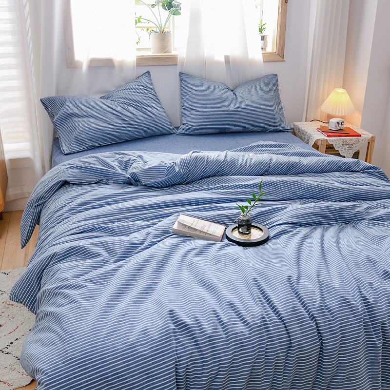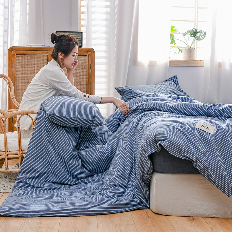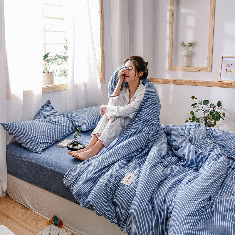 恋人优选 2023新款纯棉水洗单被套蓝白条