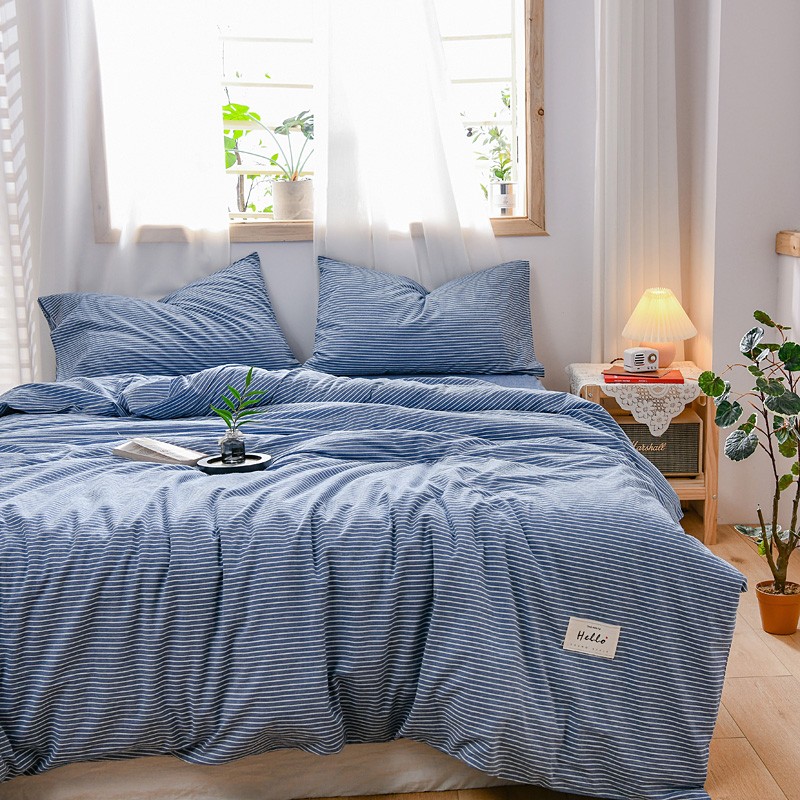 商品名称:恋人优选 2023新款纯棉水洗单被套蓝白条