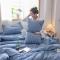 (总)恋人优选 2025新款A类牛奶绒毛毯毯子多功能双面盖毯办公室披肩,百合绿,豆沙粉,果绿,海蓝格,灰中格,橘黄,蓝大格,宾利蓝,蓝灰,蓝小格,米白,浅灰,浅蓝,深灰