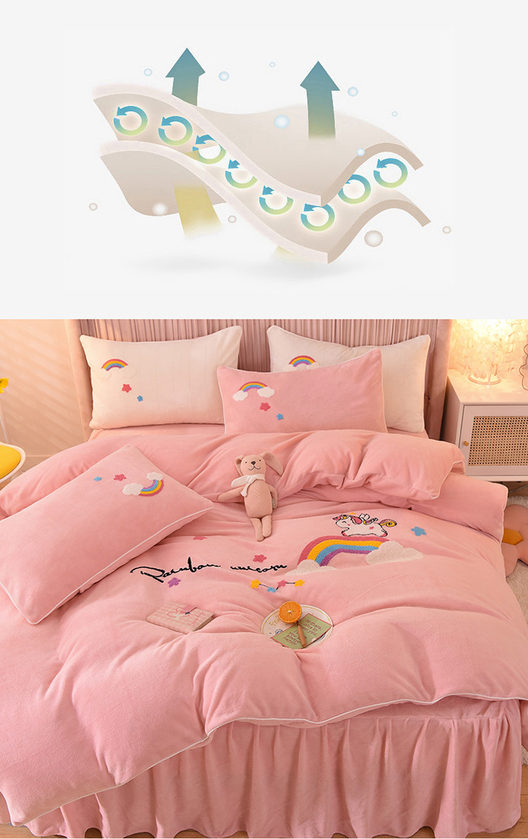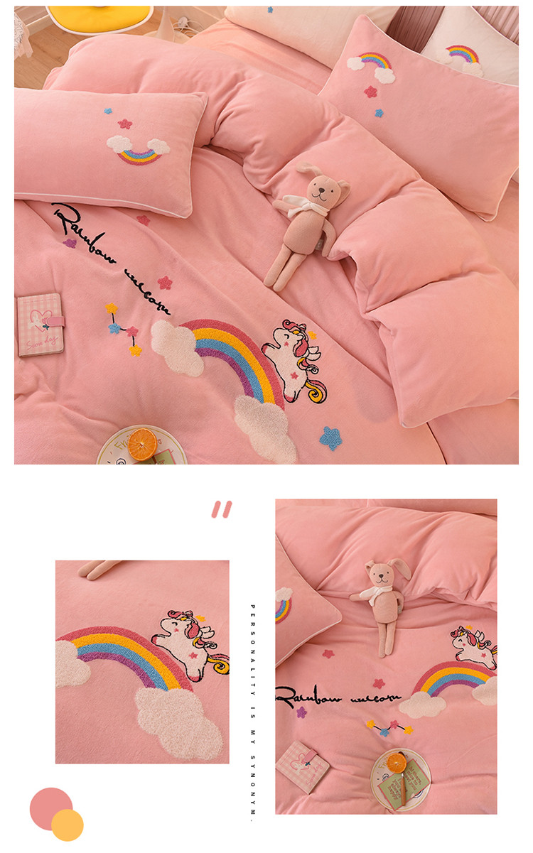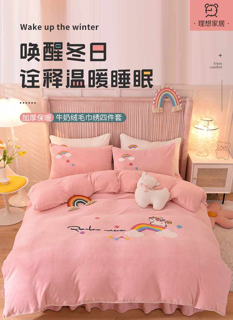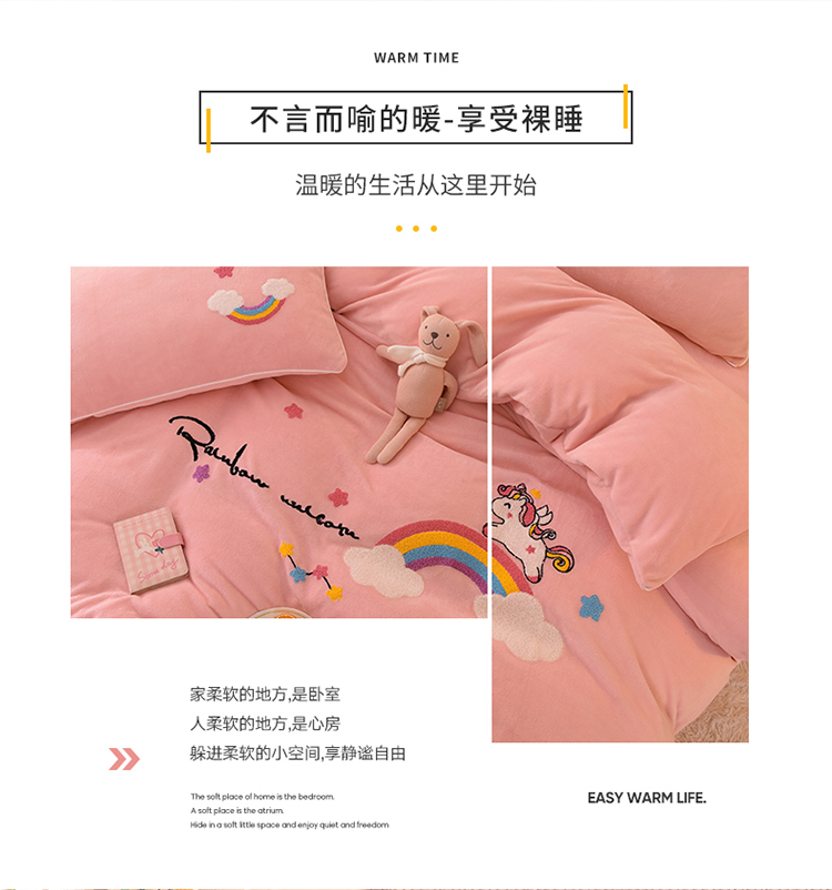 当前位置: 91家纺网 > 商品网购 > 床品套件 > 四件套 > 牛奶绒四件套 > 包小包2023新款独角兽法莱绒牛奶绒三拼四件套樱花粉