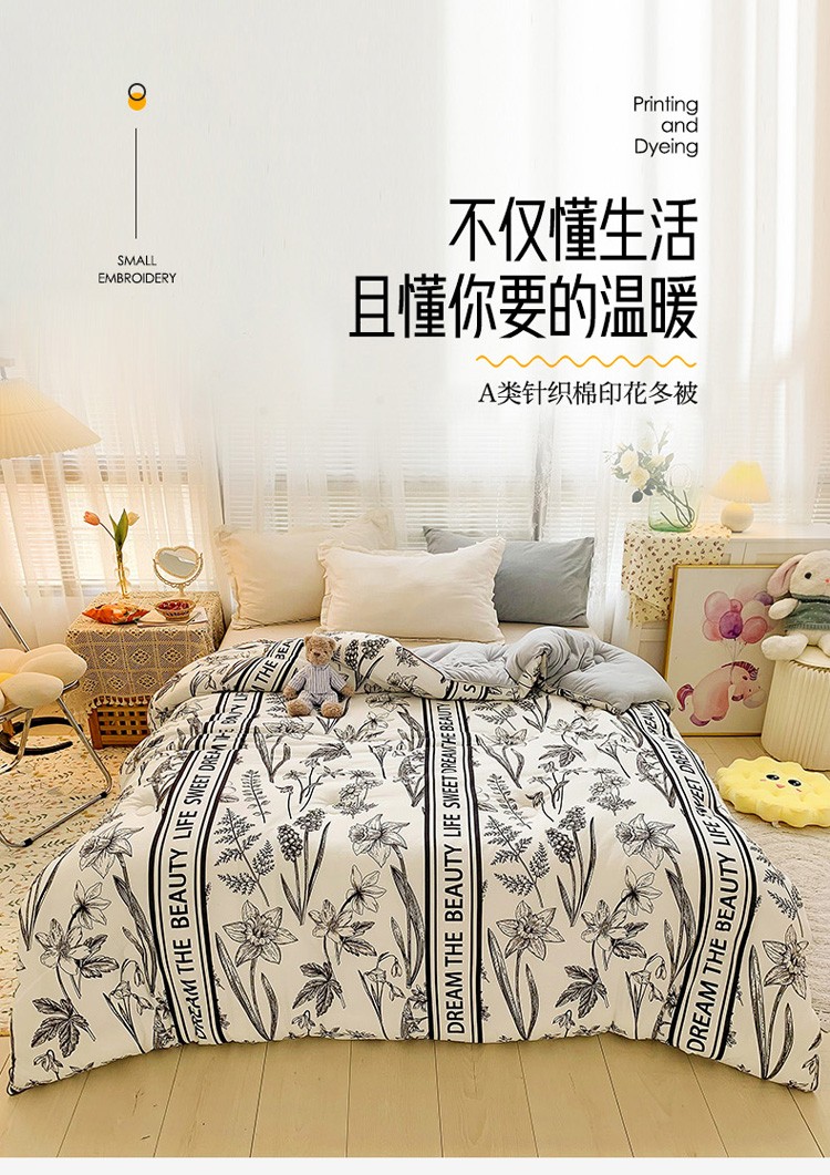 • 91家纺网 家纺一手货源 找家纺 寐居 2021针织棉印花冬被 枝枝繁花