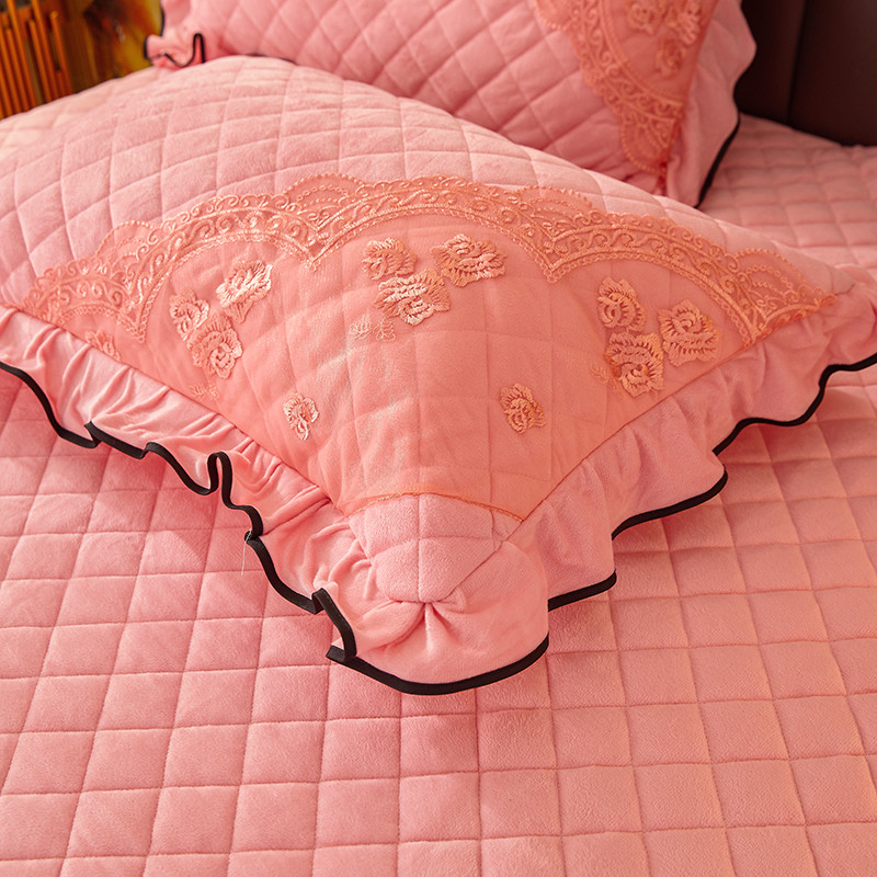 (总)瑞宝 2025新款雕花牛奶绒花边夹棉床盖四件套-莫妮卡,奶昔白,抹茶绿,奶茶咖,少女粉,雾蓝