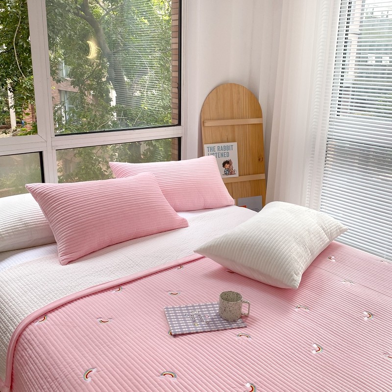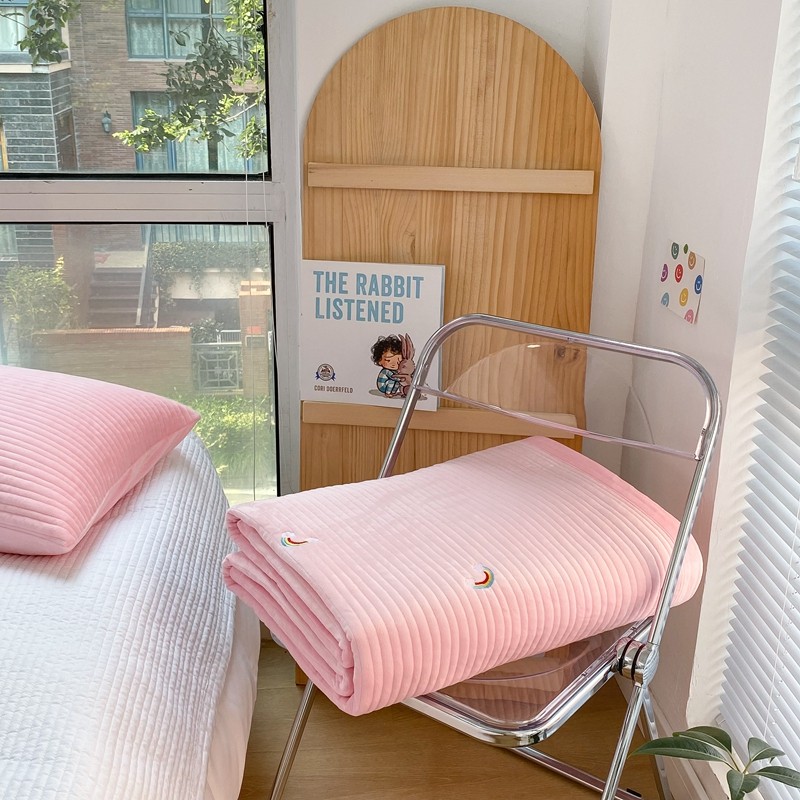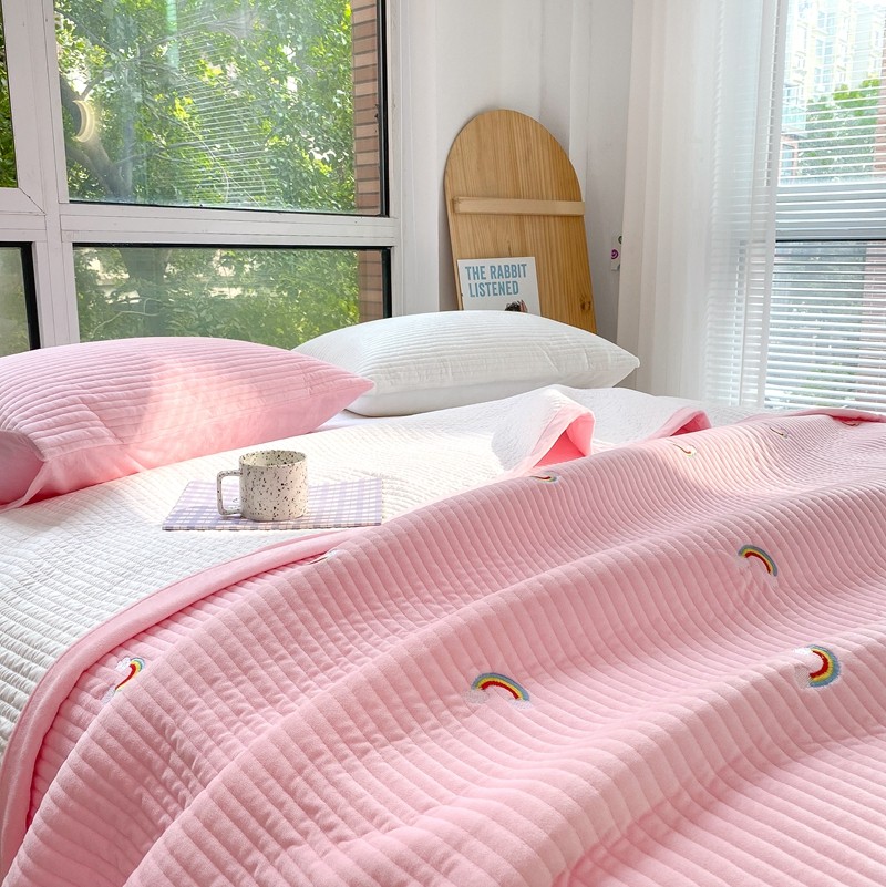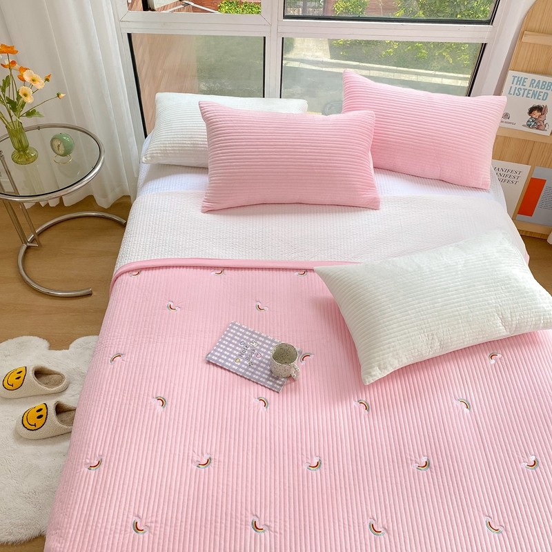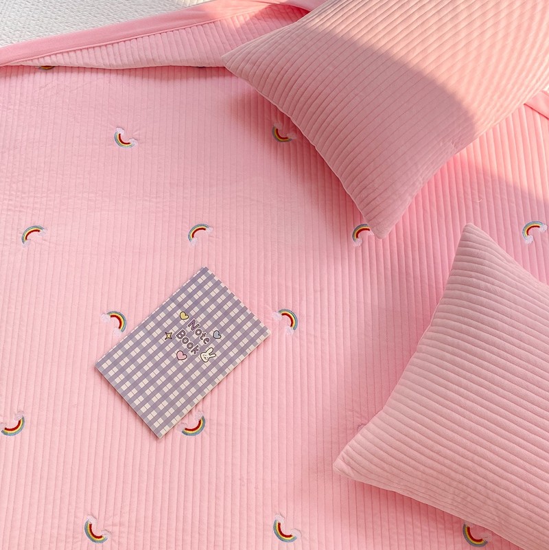 漫调 2021新款宝宝绒刺绣床盖三件套 彩虹 粉