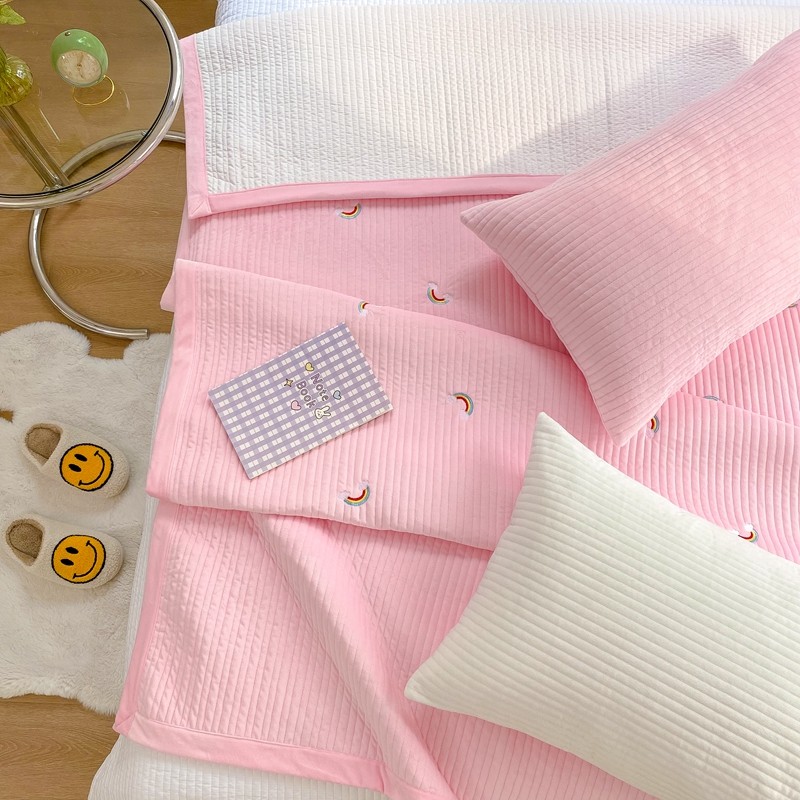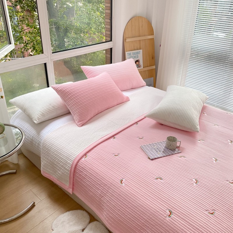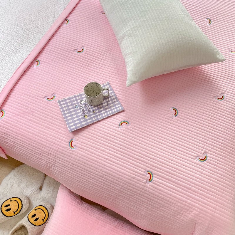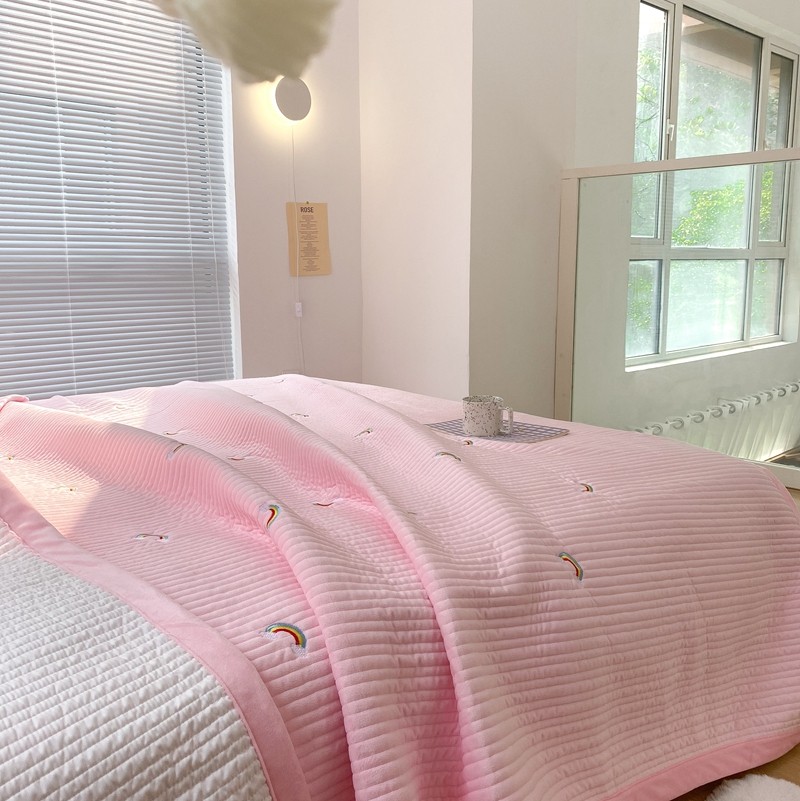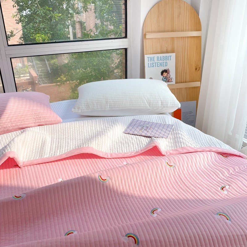 漫调 2021新款宝宝绒刺绣床盖三件套 彩虹 粉
