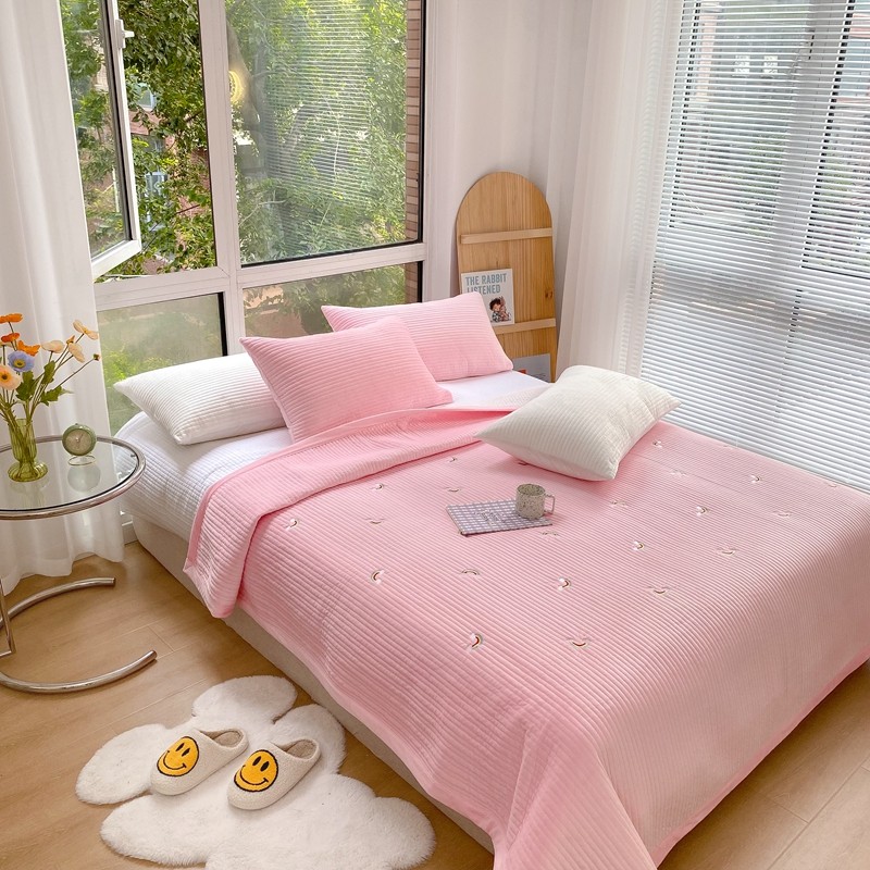 (总)漫调家纺 2025新款繁星绗缝夏被 复古风实拍,繁星白,繁星粉,繁星灰,繁星咖,繁星绿,繁星杏