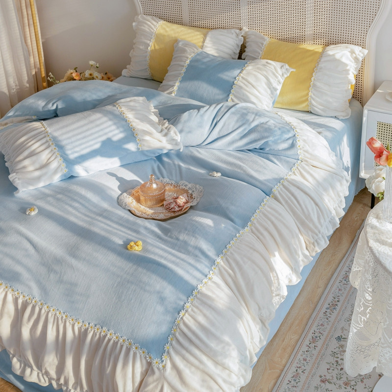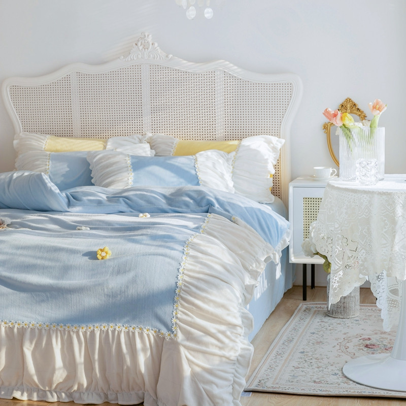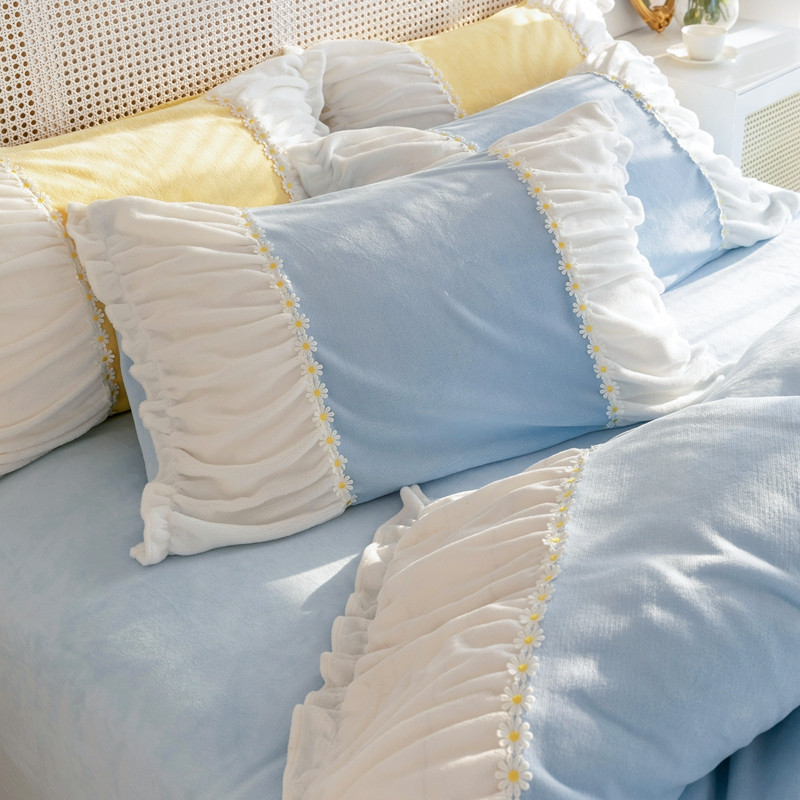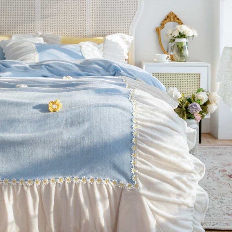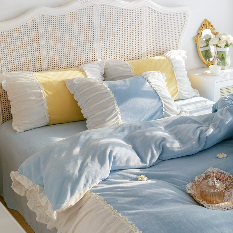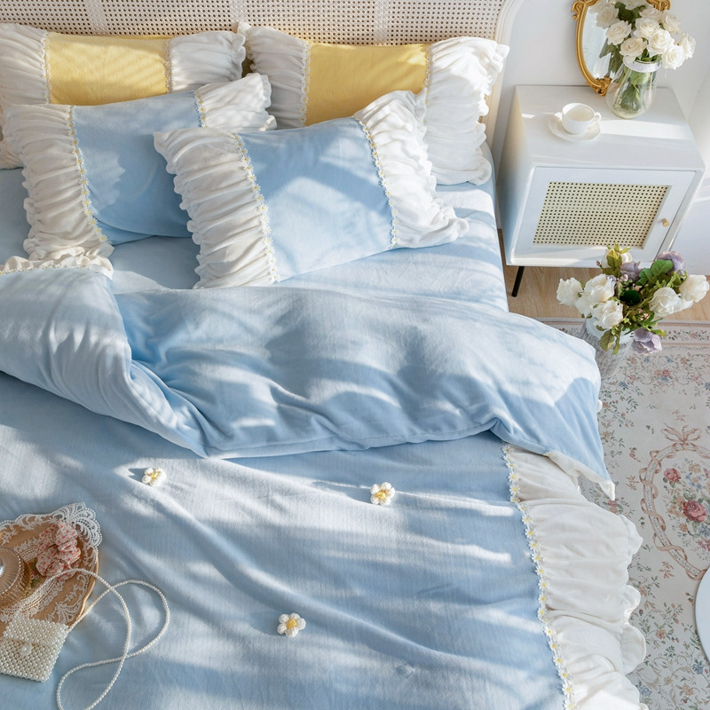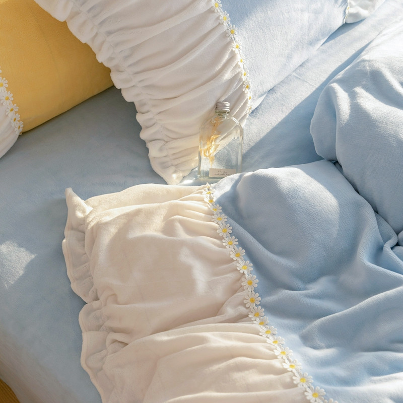 漫调 2021新款法式安妮小花朵牛奶绒四件套 安妮小花 蓝