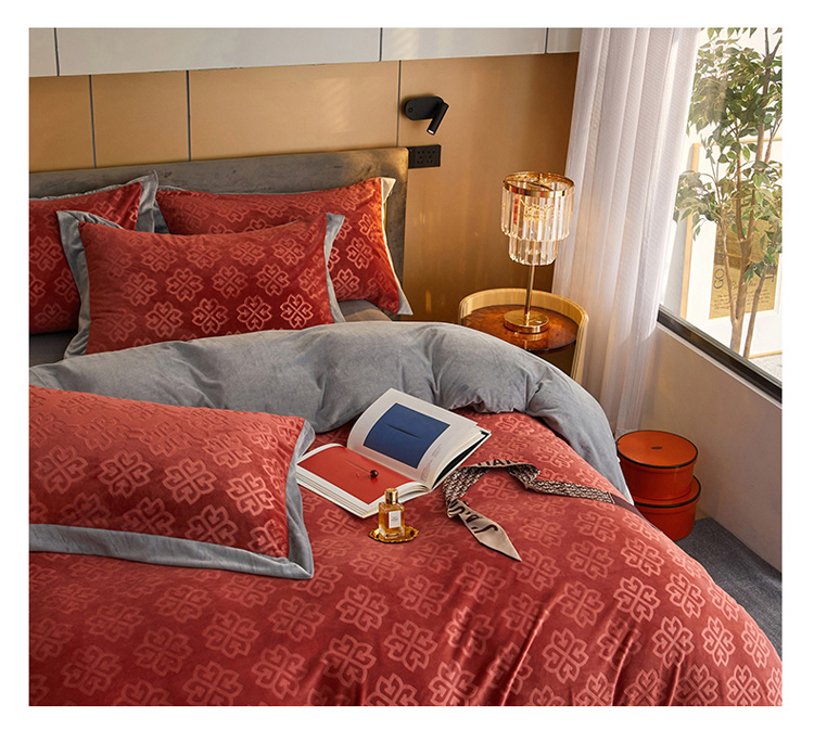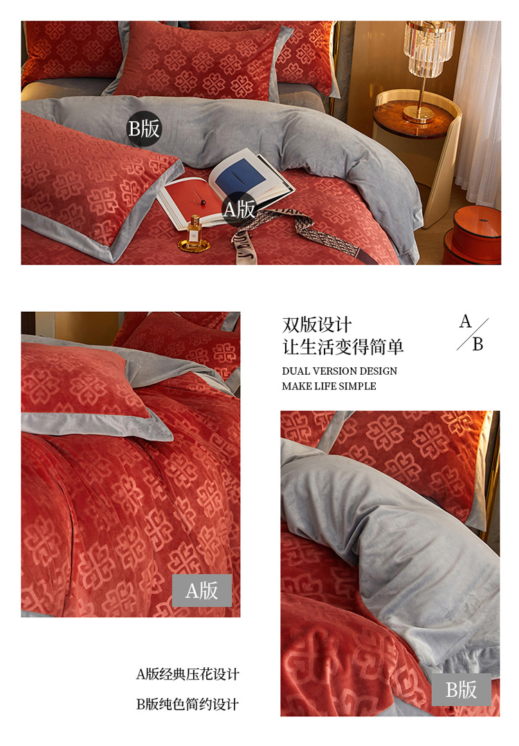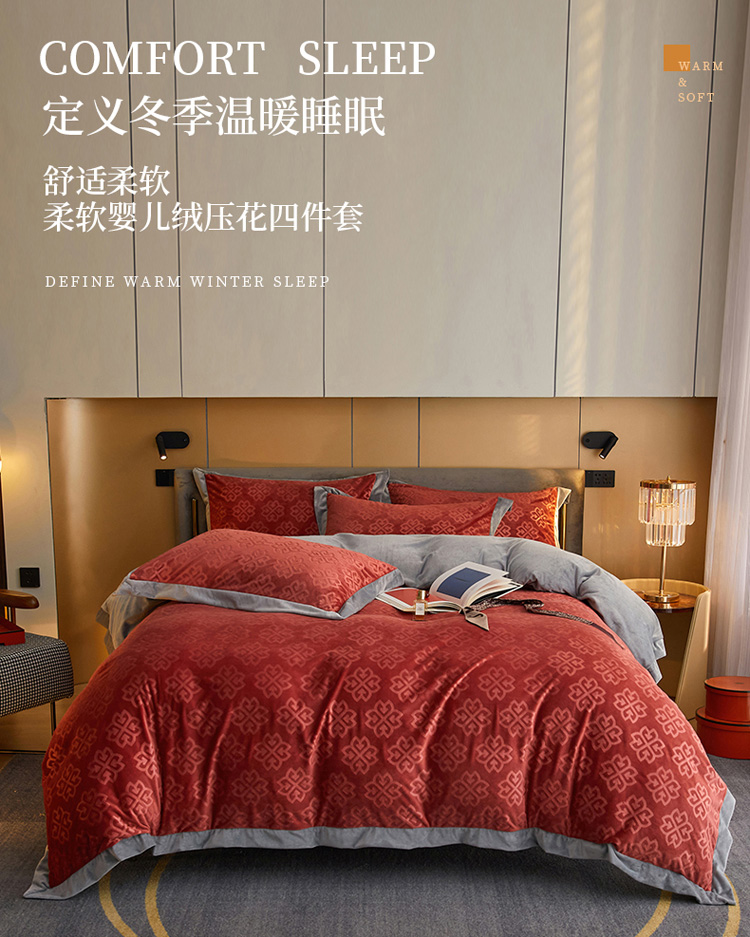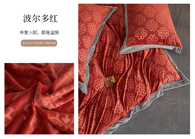 爱缦2021新款格调系列棚拍230克婴儿绒四件套 波尔多红