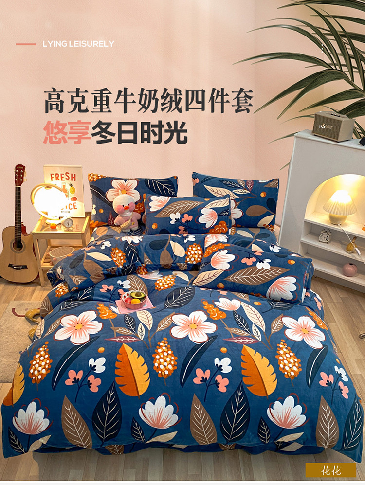 金爱家 2021新款跑量款牛奶绒四件套 花花