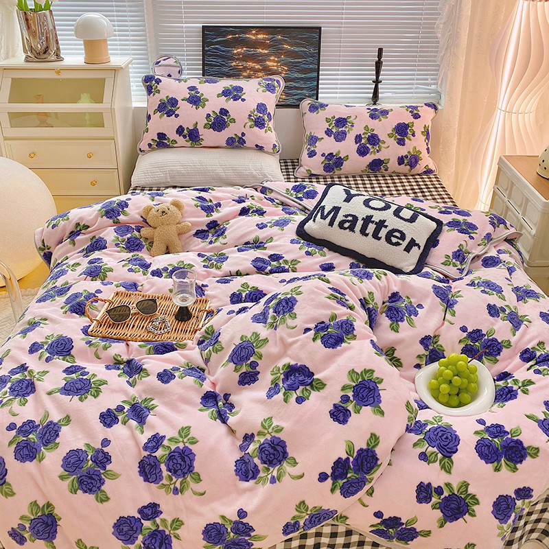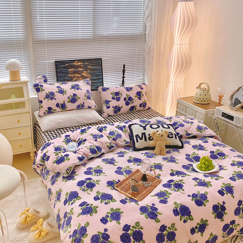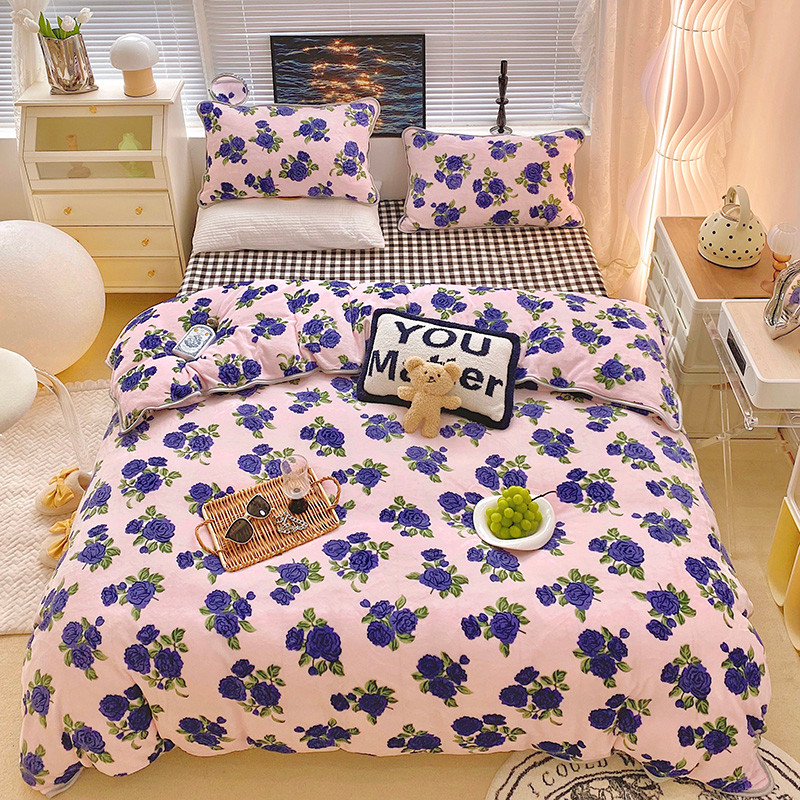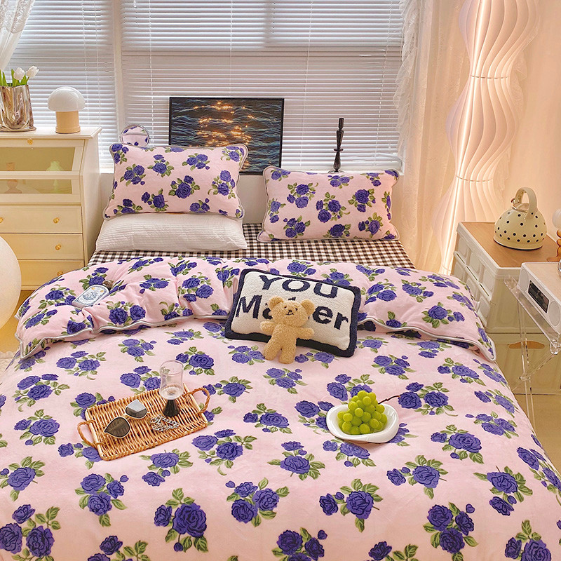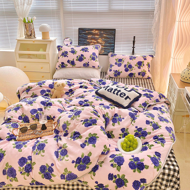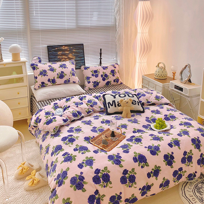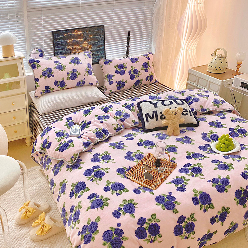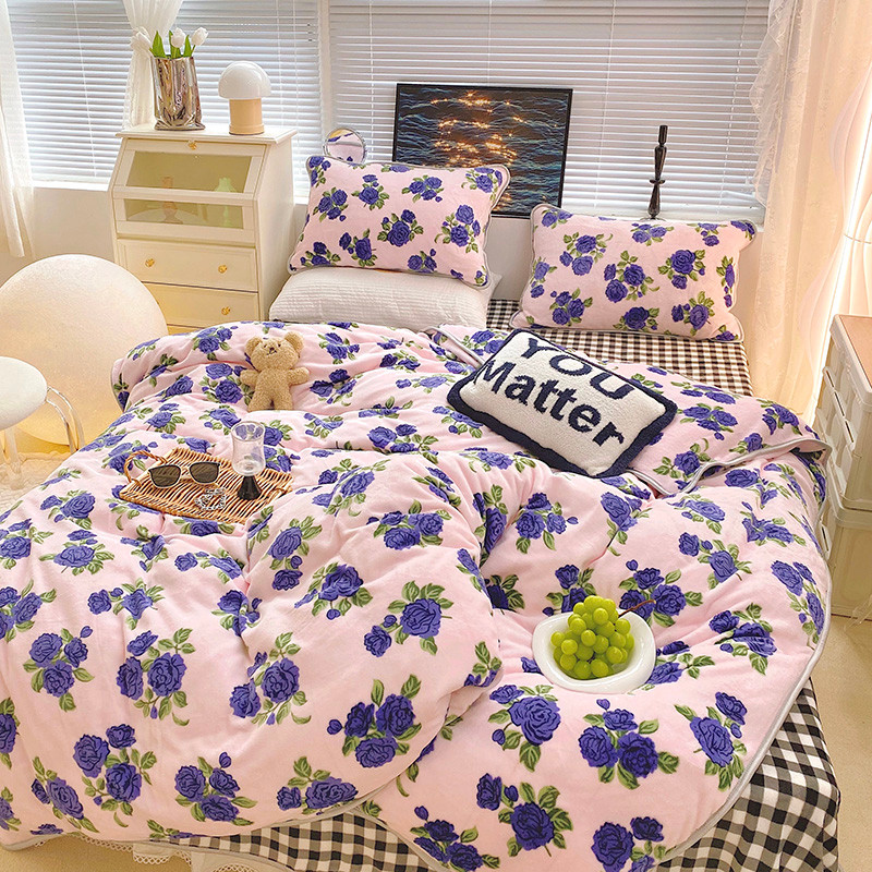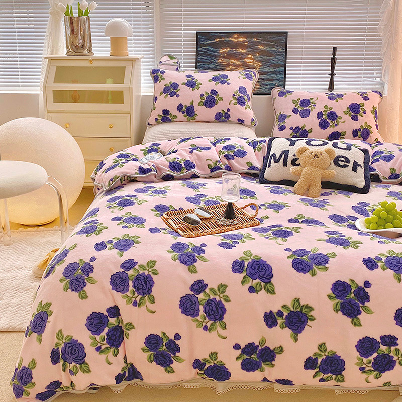 顾里2021新款ins韩国高端保暖牛奶绒四件套 韩国紫花