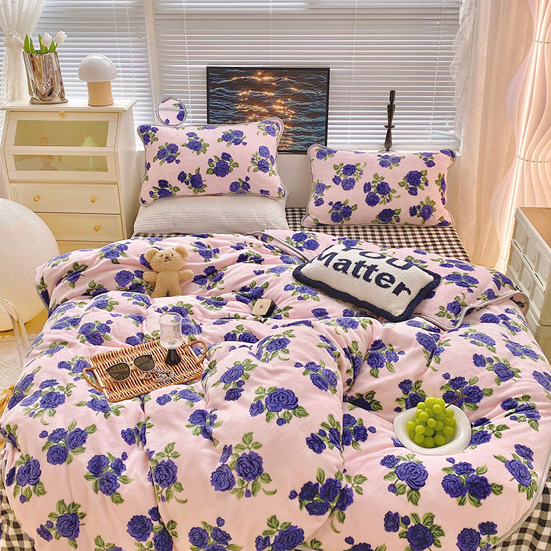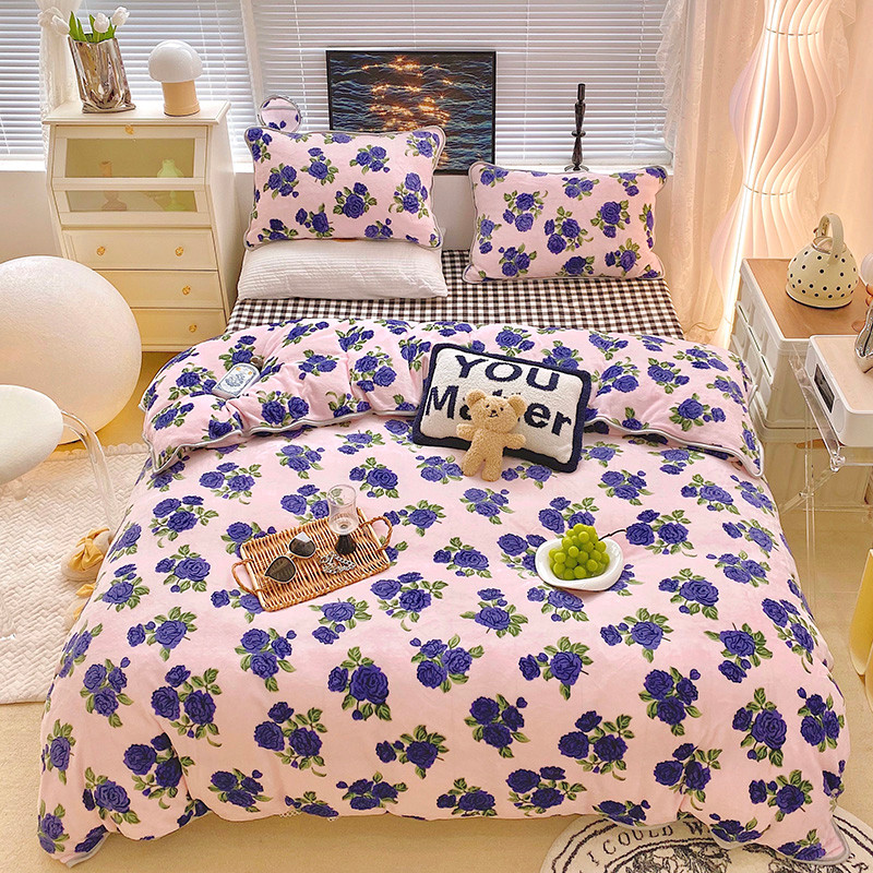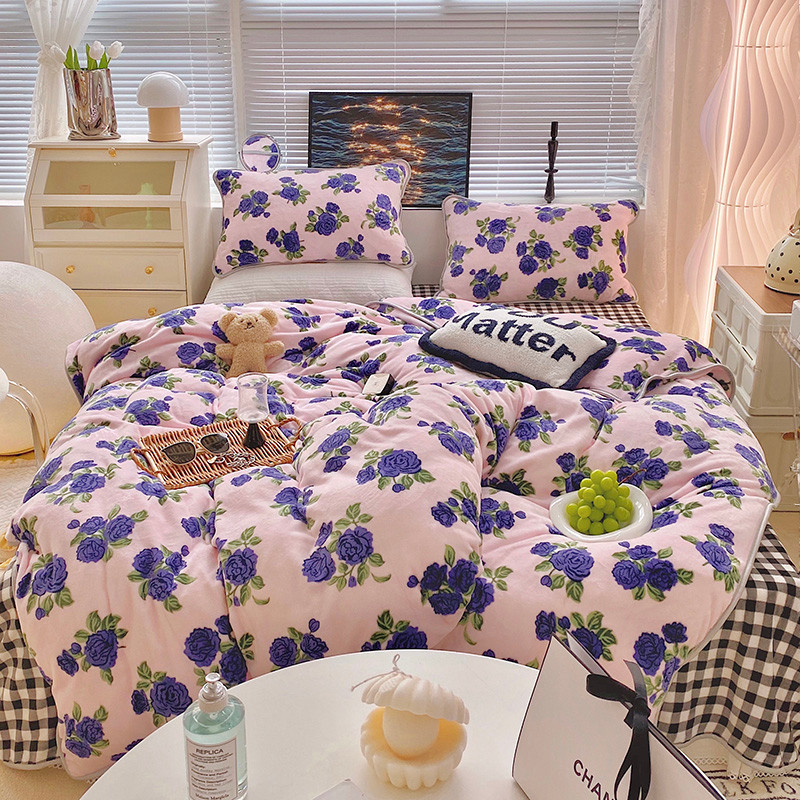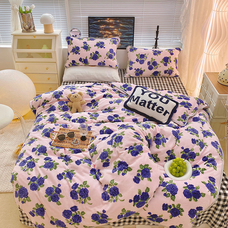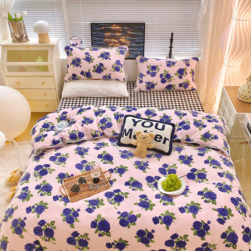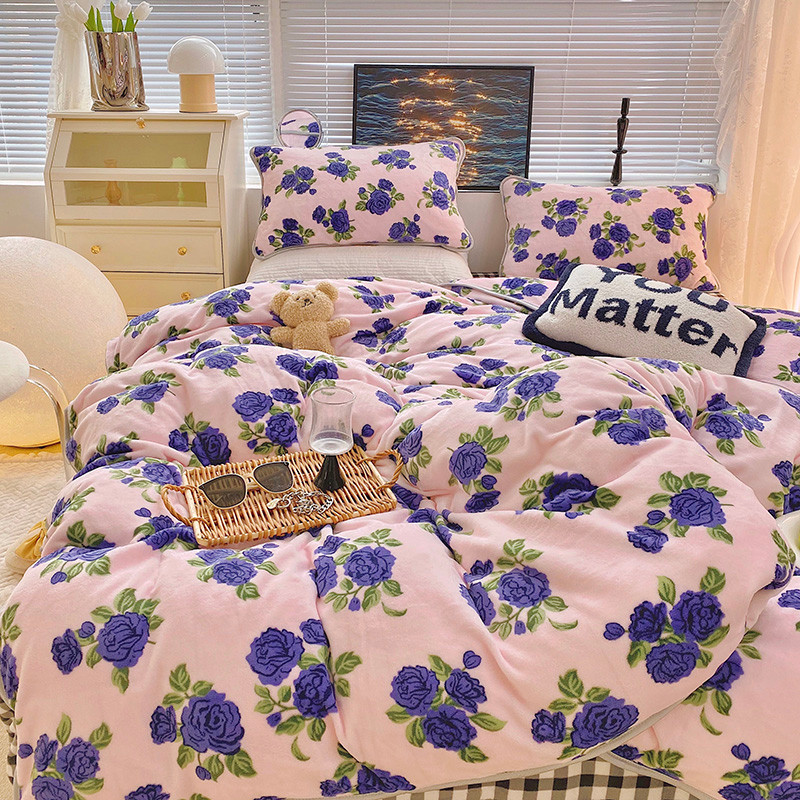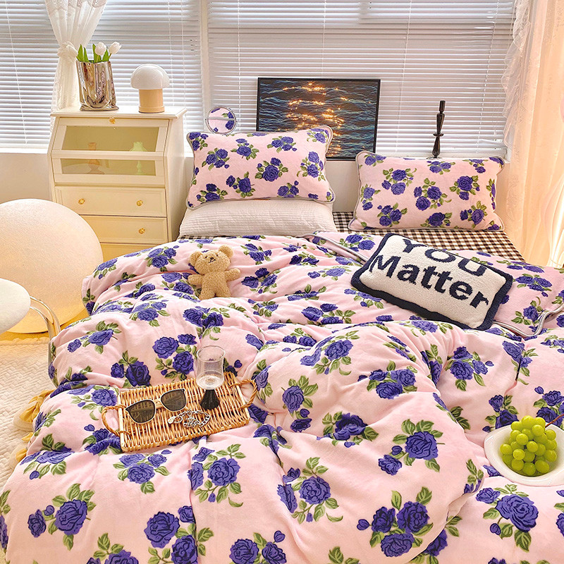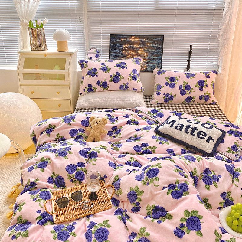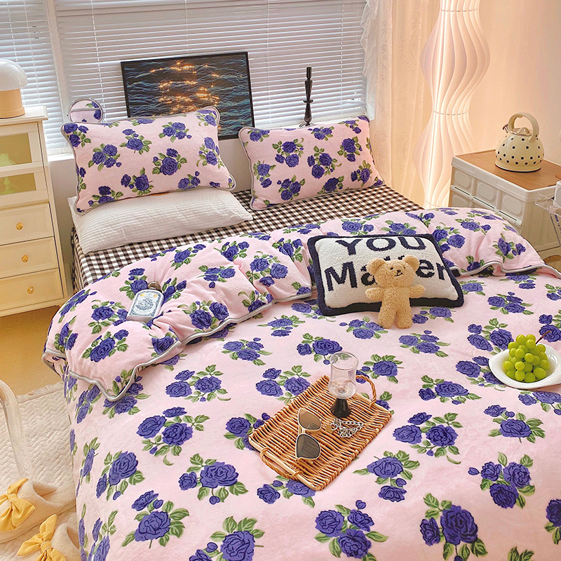 顾里2021新款ins韩国高端保暖牛奶绒四件套 韩国紫花