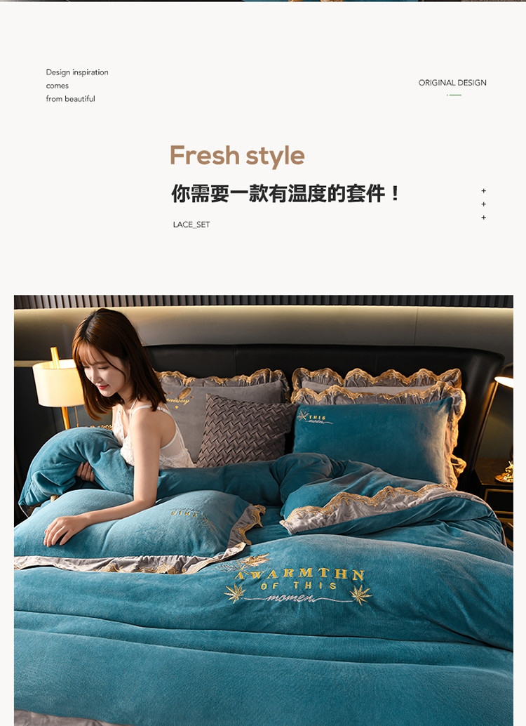(总)眠帛家居 2025新款A类皱皱纱蕾丝花边四件套,阿狸,蝶舞,芬芳,锦簇,温馨,香溢