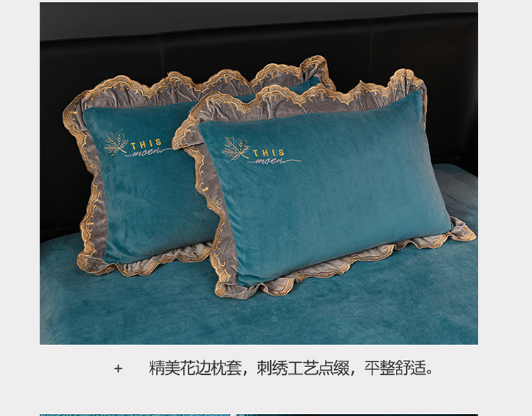 商品名称:眠帛家居 2021新款秋冬牛奶绒刺绣工艺四件套 枫叶-蓝色
