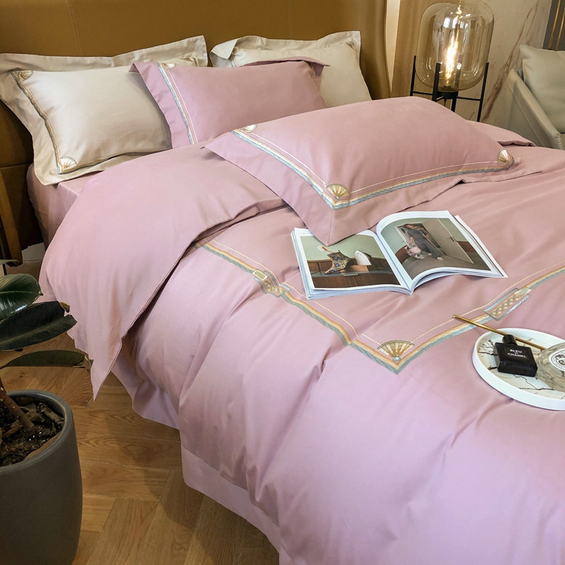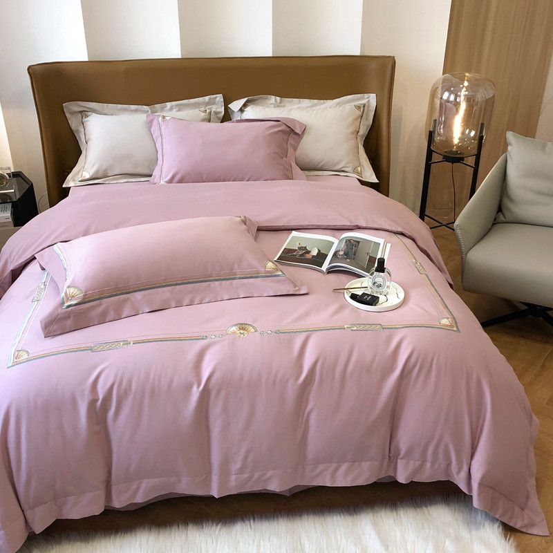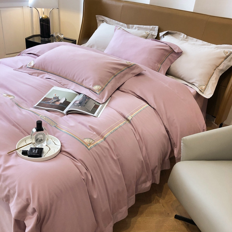 (总)榻尚家居 2023新款纯棉贡缎提花四件套(会员-10),缤兰,烟粉