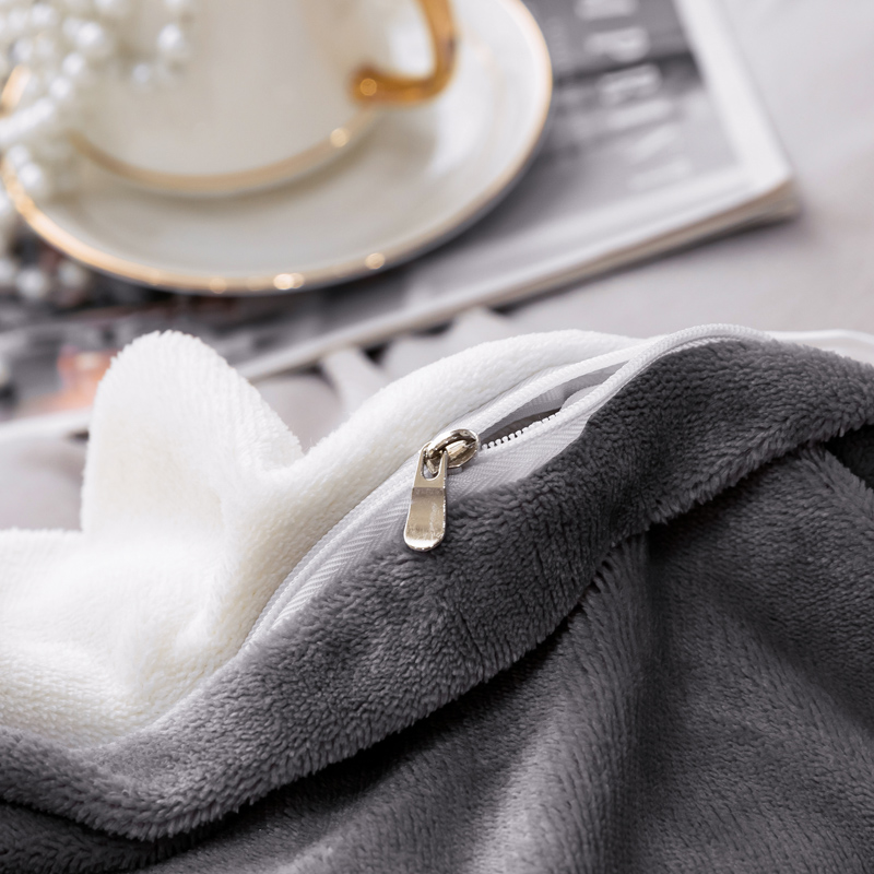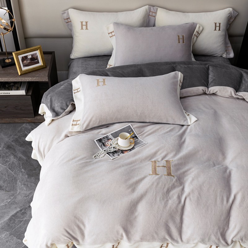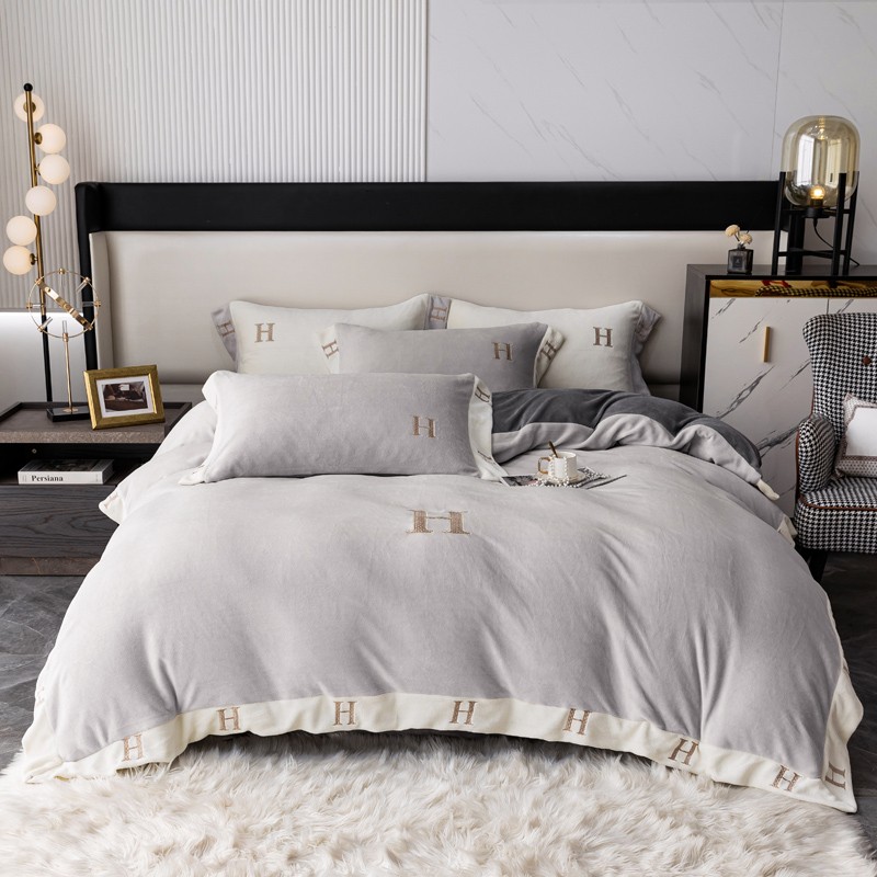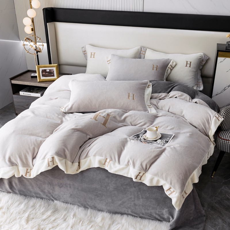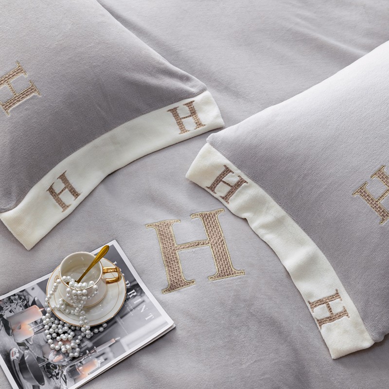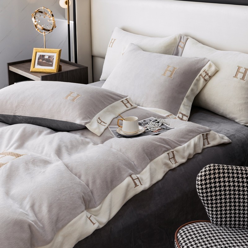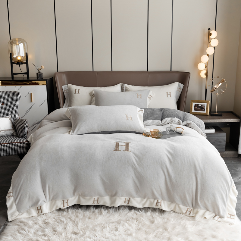 芯贝儿 2021新款加厚牛奶绒轻奢宽边刺绣四件套 慕斯灰