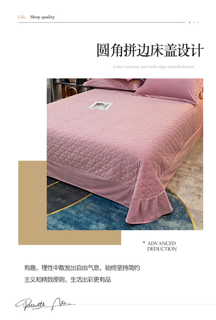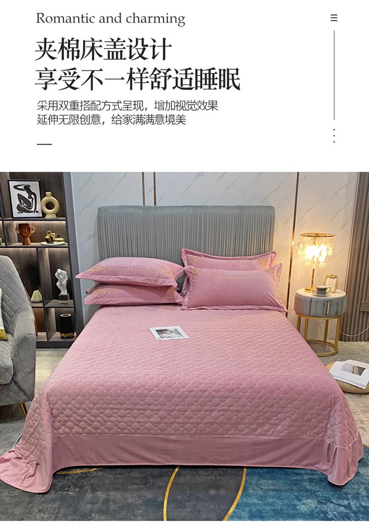 (总)星尚家纺 2024新款加厚保暖全消光牛奶绒夹棉床裙四件套-玫瑰之恋,粉玉,寐紫,浅蓝,水绿