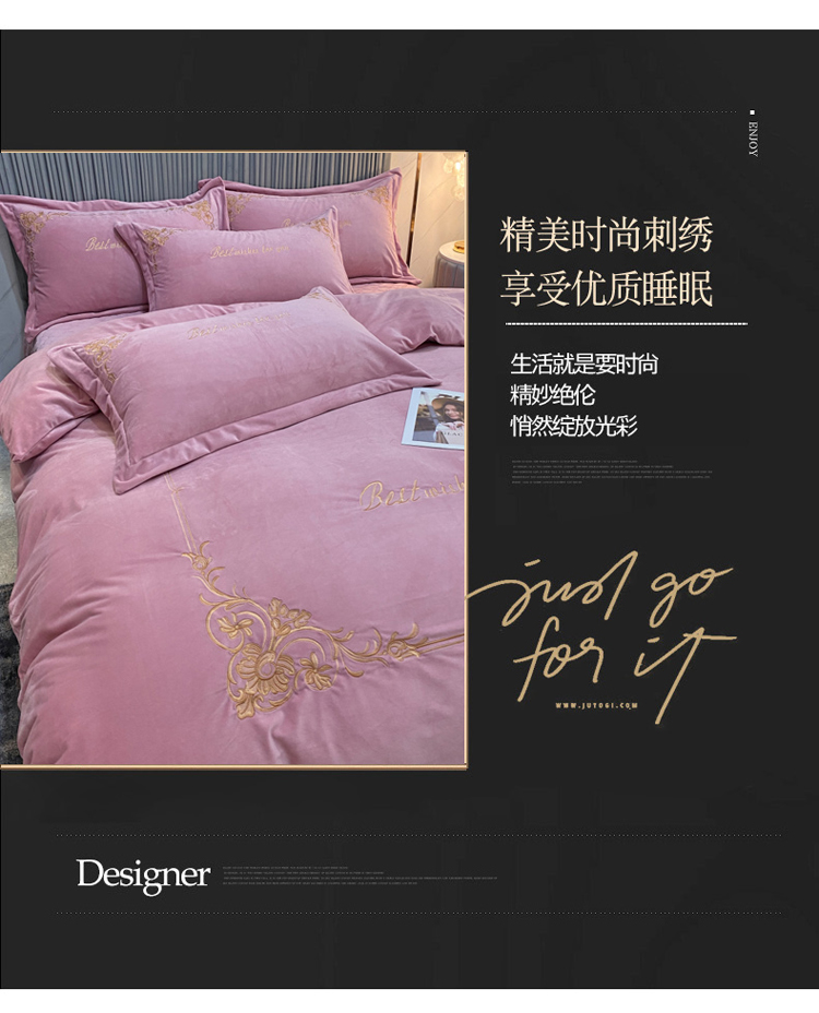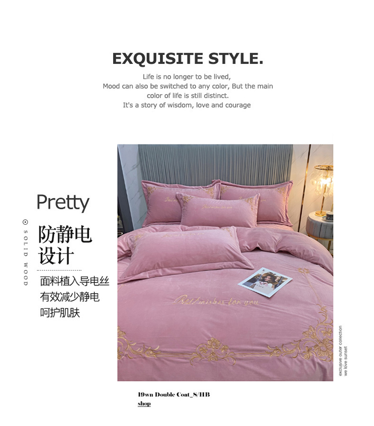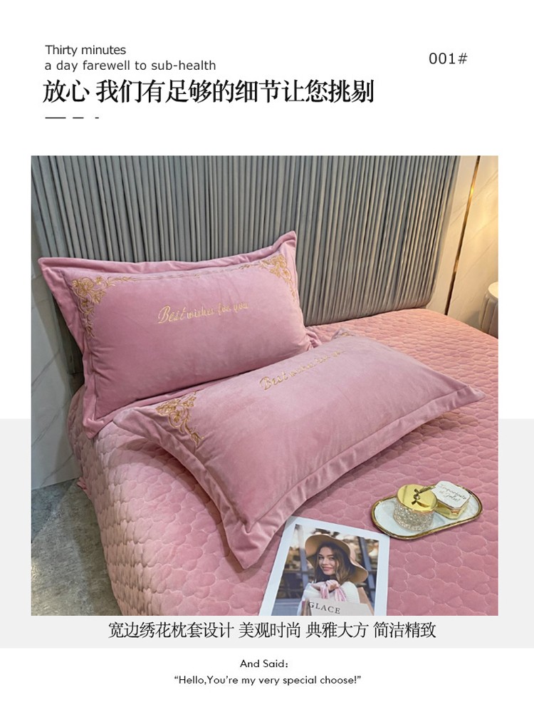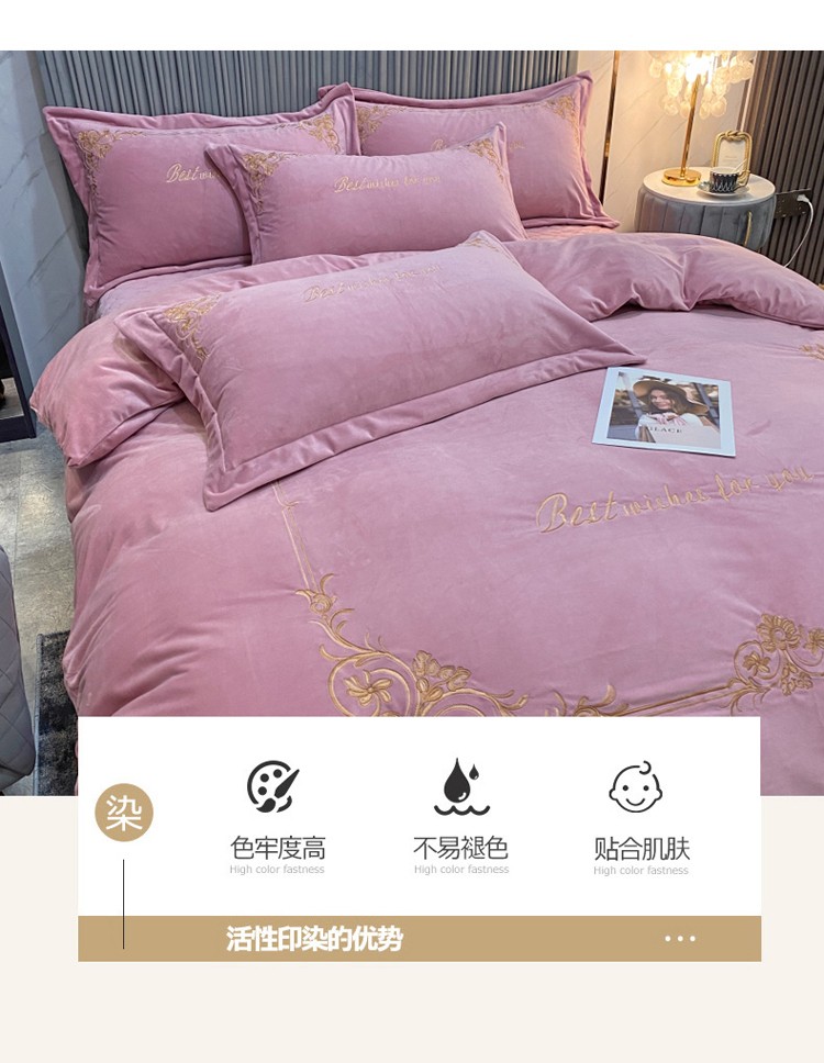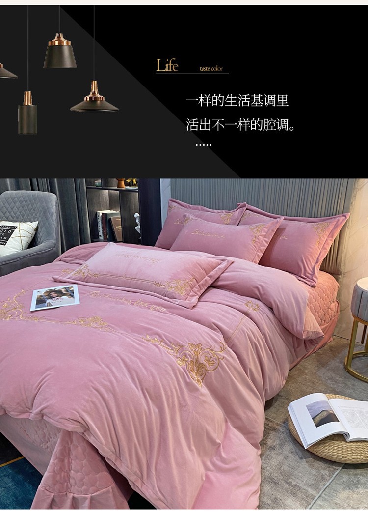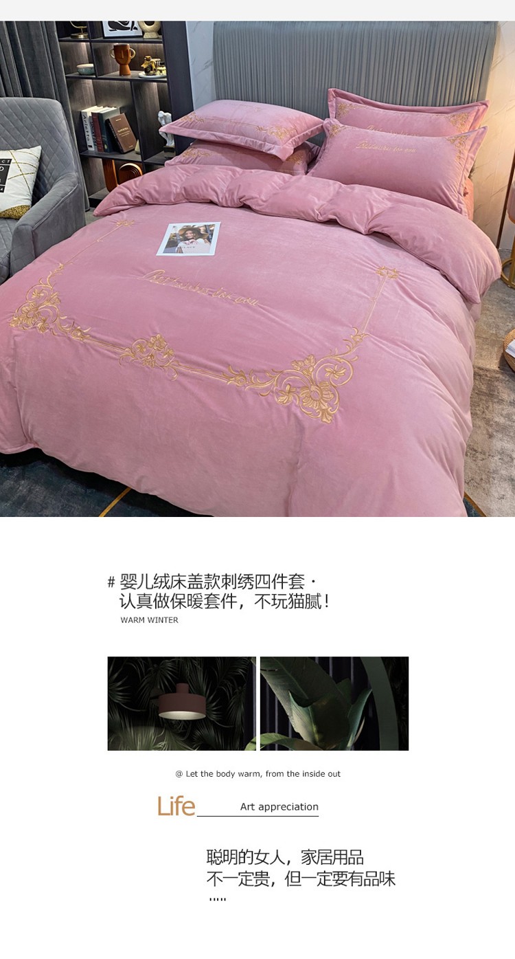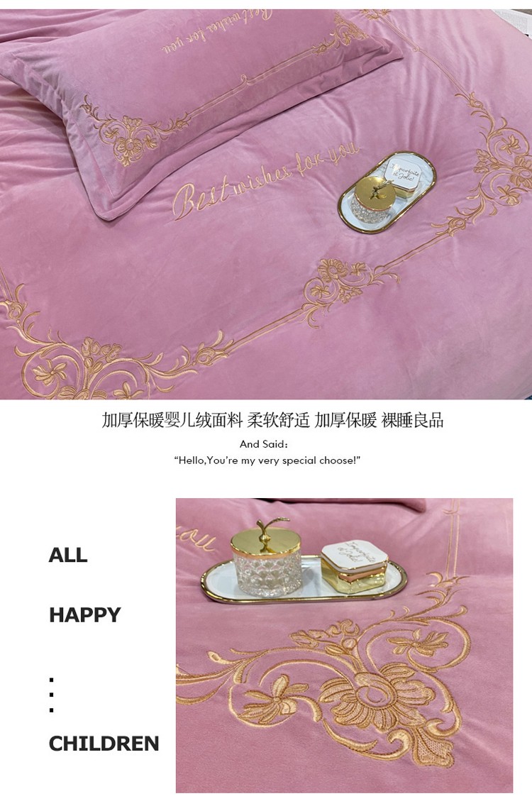商品名称:星尚2021高品质婴儿绒夹棉床盖绣花四件套牛奶法莱绒 清雅粉